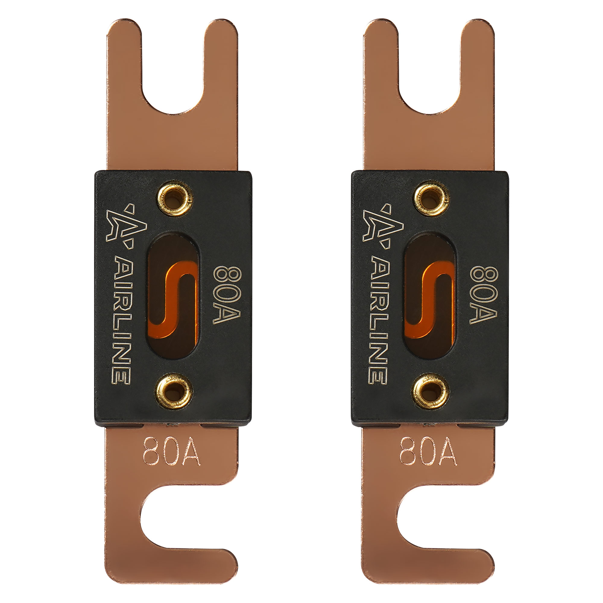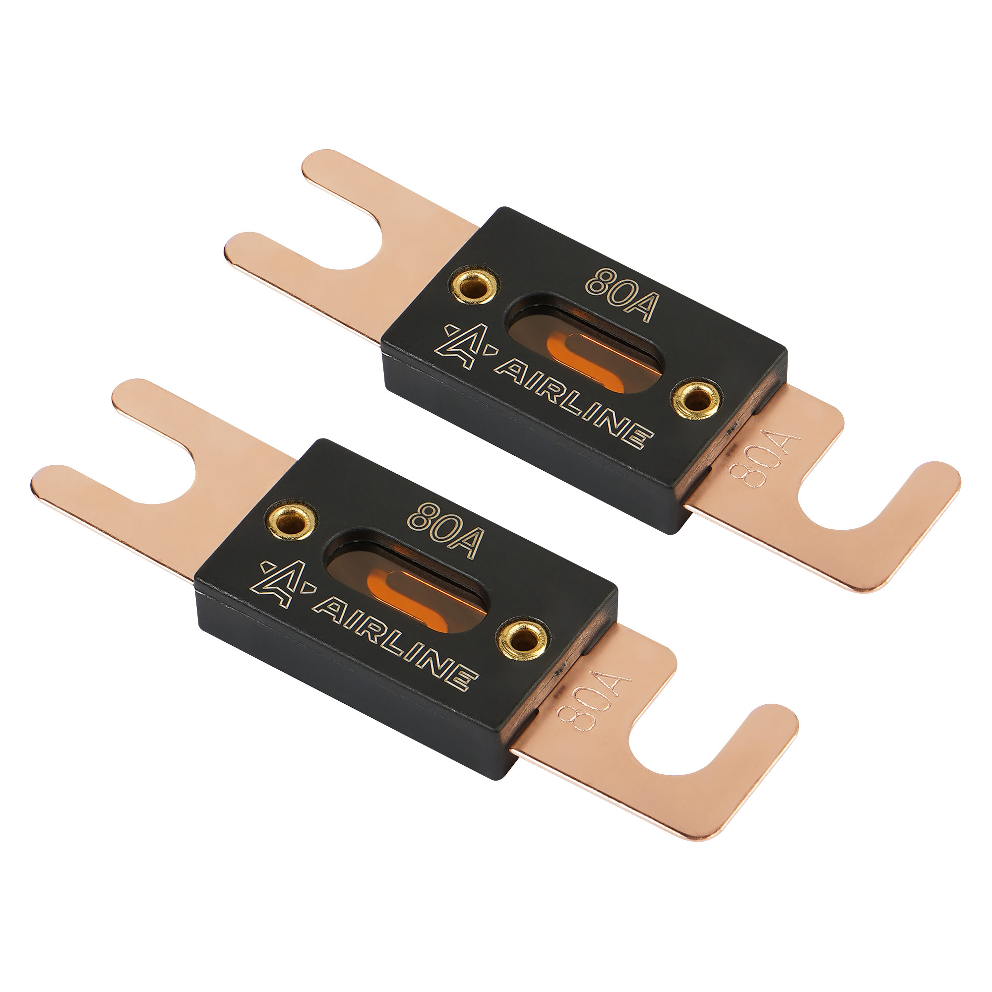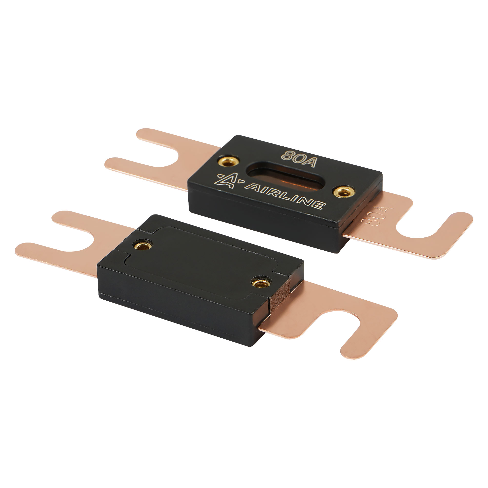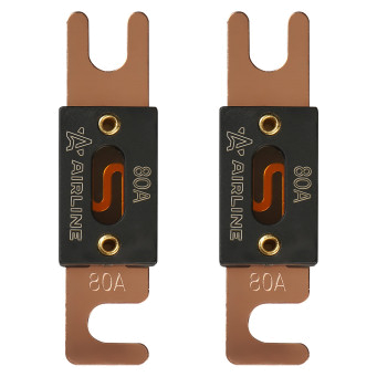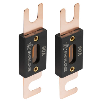 Комплект из двух ленточных предхранителей типа ANL. Предназначен для защиты автомобильных электрических цепей и устройств в них от перегрузок и короткого замыкания. В предохранителях использована вставка из высококачественного сплава меди, которая в случае нештатной ситуации разомкнет неисправную электрическую цепь. Предохранители такого типа преимущественно используются в системах автозвука. Благодаря своей надежности и долговечности предохранители AIRLINE обеспечивают безопасносную эксплуатацию автомобиля и позволяют избежать поломок, связанных с перегрузками или короткими замыканиями. Используйте предохранители AIRLINE для надежной защиты вашего автомобиля.