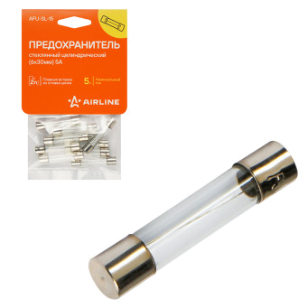 Стеклянный цилиндрический предохранитель типа 6*30. Предназначен для защиты автомобильных электрических цепей и устройств в них от перегрузок и короткого замыкания. В предохранителе использована вставка из высококачественного сплава цинка, которая в случае нештатной ситуации разомкнет неисправную электрическую цепь. Благодаря своей надежности и долговечности предохранители AIRLINE обеспечивают безопасную эксплуатацию автомобиля и позволяют избежать поломок, связанных с перегрузками или короткими замыканиями. Предохранитель имеет стандартный типоразмер и легко устанавливается в штатное место в блоке предохранителей без необходимости специальных знаний и инструментов. Также такие предохранители подходят к штекерам, вставляющимся в прикуриватель.
