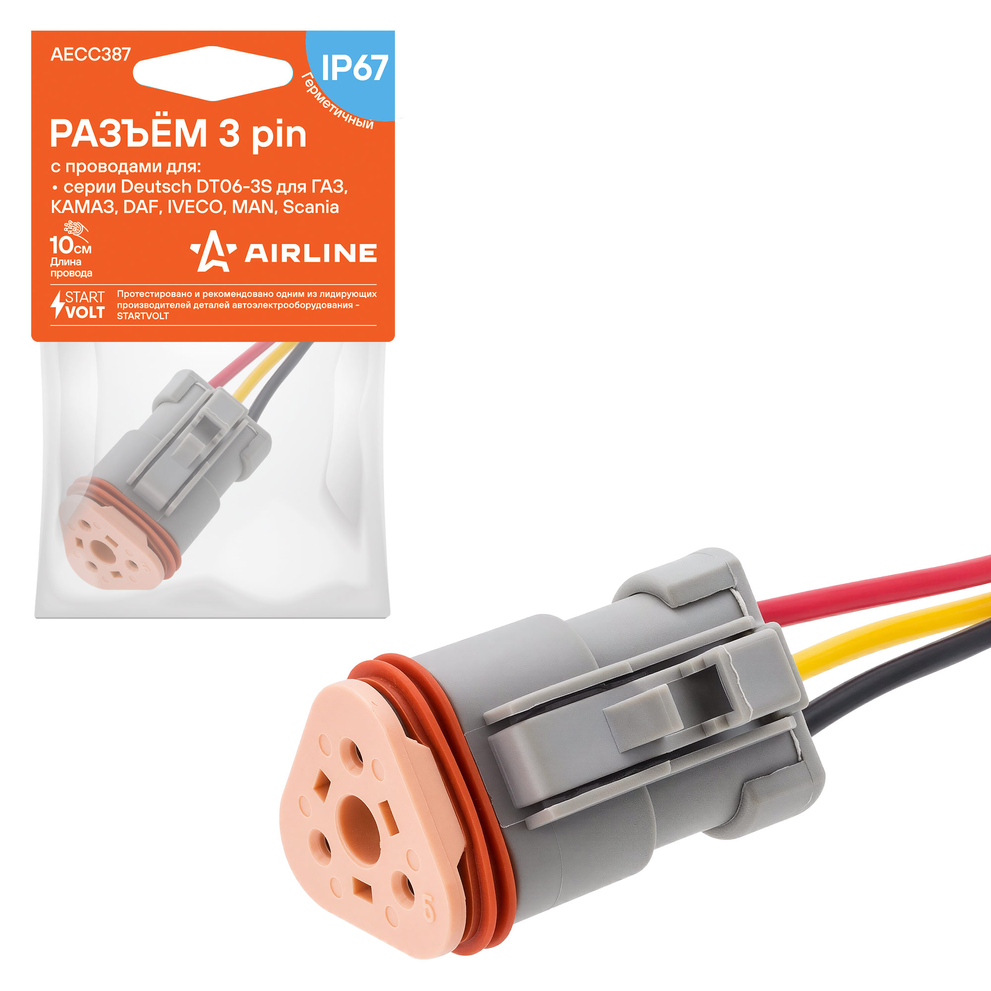 Разъём AIRLINE AECC387 — надежное решение для замены вышедшего из строя оригинального разъёма. Он полностью соответствует оригинальному разъёму автопроизводителя по размерам корпуса, типу контактов и сечению провода, что обеспечивает простую установку без необходимости внесения изменений в конструкцию узлов. Изготовлен из высококачественных материалов, устойчивых к износу, высоким температурам и воздействиям окружающей среды. Высокая точность исполнения гарантирует долговечность и устойчивость к повреждениям.