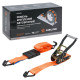 Ремень крепления автовозный ASTA02 предназначен для надежной фиксации автомобилей на эвакуаторах и автовозах. Этот ремень отличается высокой прочностью и долговечностью, что обеспечивает безопасность при транспортировке транспортных средств. Храповый механизм, выполненный из стали, позволяет легко и быстро натянуть ремень, обеспечивая надежное закрепление.