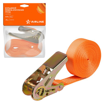 Кольцевые стяжные ремни AIRLINE идеально подходят для крепления грузов на грузовых транспортных средствах, прицепах и в багажнике автомобилей, а также для фиксации различных предметов, обеспечивая безопасность и сохранность груза в любых условиях. Ремень с храповиком имеет длину 6 м. Прочность и выдерживаемая нагрузка до 0,8 т. При этом при фиксации «на обхват» достигается усилие до 1,6 т, что создаёт дополнительный запас надежности. Важно отметить, что ремень не предназначен для подъема грузов.