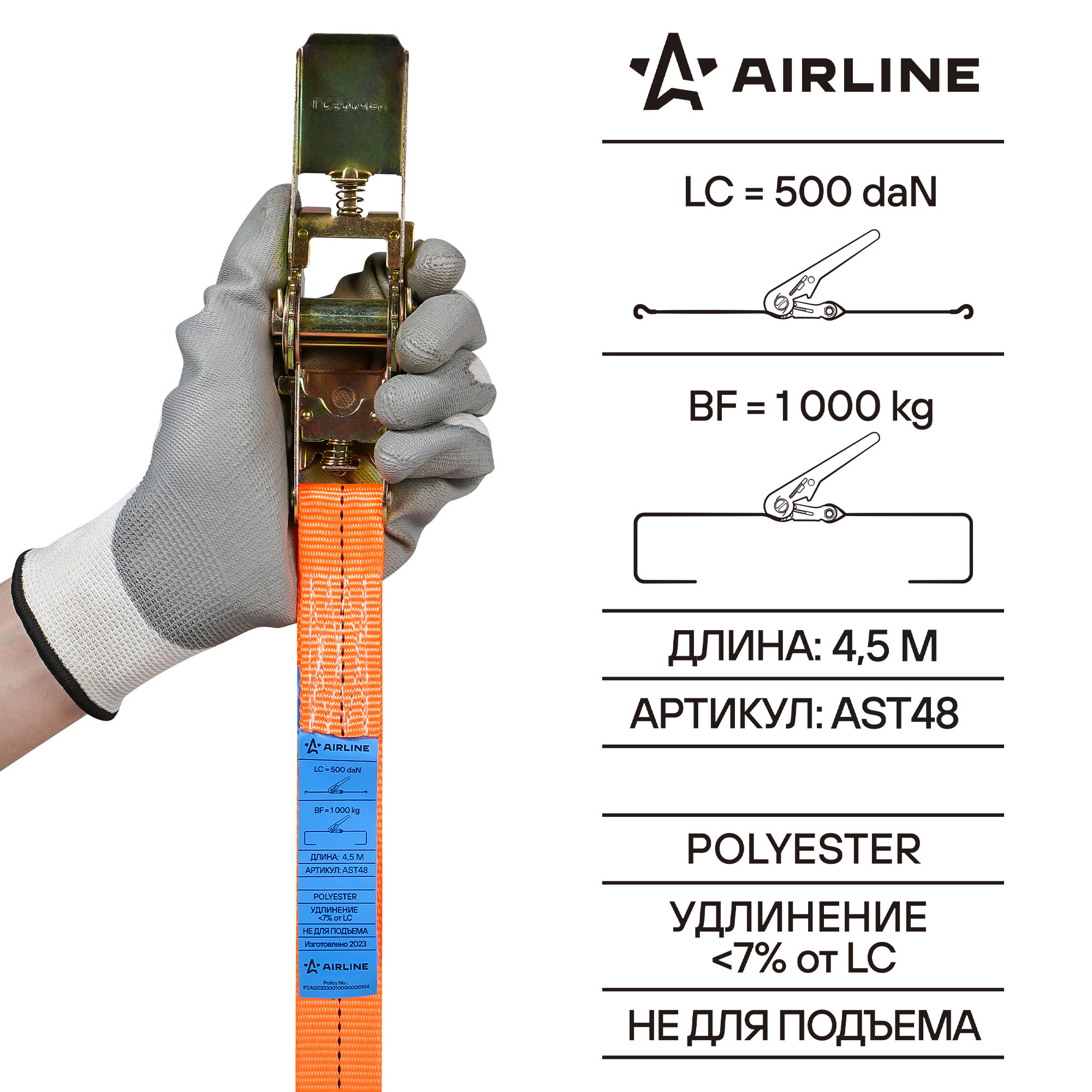 Кольцевые стяжные ремни AIRLINE идеально подходят для крепления грузов на грузовых транспортных средствах, прицепах и в багажнике автомобилей, а также для фиксации различных предметов, обеспечивая безопасность и сохранность груза в любых условиях. Ремень с храповиком имеет длину 4,5 м. Прочность и выдерживаемая нагрузка до 1 т. Важно отметить, что ремень не предназначен для подъема грузов.