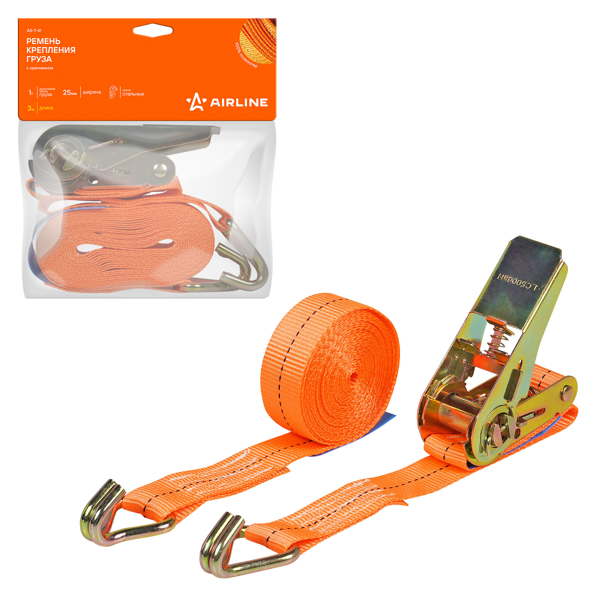 Стяжные ремни AIRLINE идеально подходят для крепления грузов на грузовых транспортных средствах, прицепах и в багажнике автомобилей, а также для фиксации различных предметов, обеспечивая безопасность и сохранность груза в любых условиях. Ремень с храповиком имеет длину 3 м. Прочность и выдерживаемая нагрузка до 1 т. Важно отметить, что ремень не предназначен для подъема грузов.