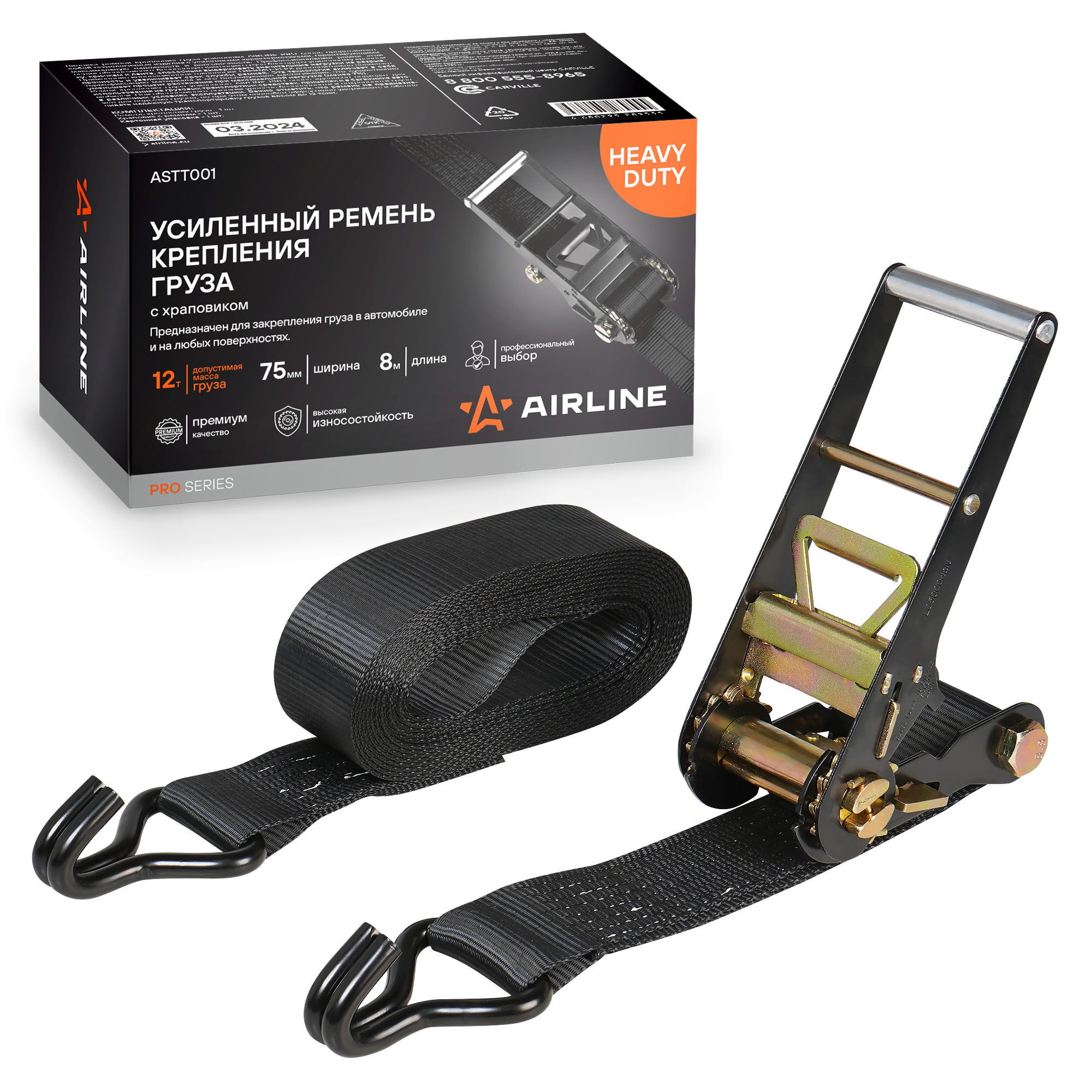 Ремни крепления груза усиленные AIRLINE PRO series идеально подходят для использования на грузовых транспортных средствах, прицепах и в багажнике автомобилей. Они обеспечивают высокий уровень безопасности и сохранности груза в различных условиях эксплуатации. Важно отметить, что ремень не предназначен для подъема грузов, но при этом способен эффективно удерживать и обеспечивать надежную транспортировку грузов весом до 12 тонн.