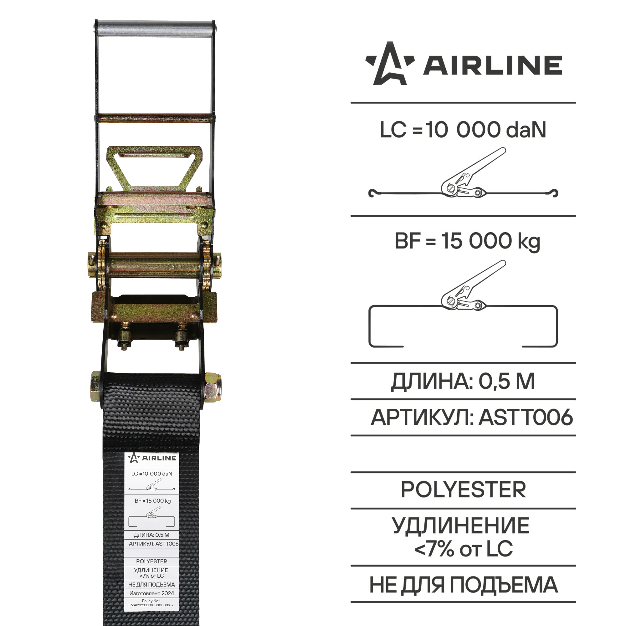 Ремни крепления груза усиленные AIRLINE PRO series идеально подходят для использования на грузовых транспортных средствах, прицепах и в багажнике автомобилей. Они обеспечивают высокий уровень безопасности и сохранности груза в различных условиях эксплуатации. Важно отметить, что ремень не предназначен для подъема грузов, но при этом способен эффективно удерживать и обеспечивать надежную транспортировку грузов весом до 15 тонн.