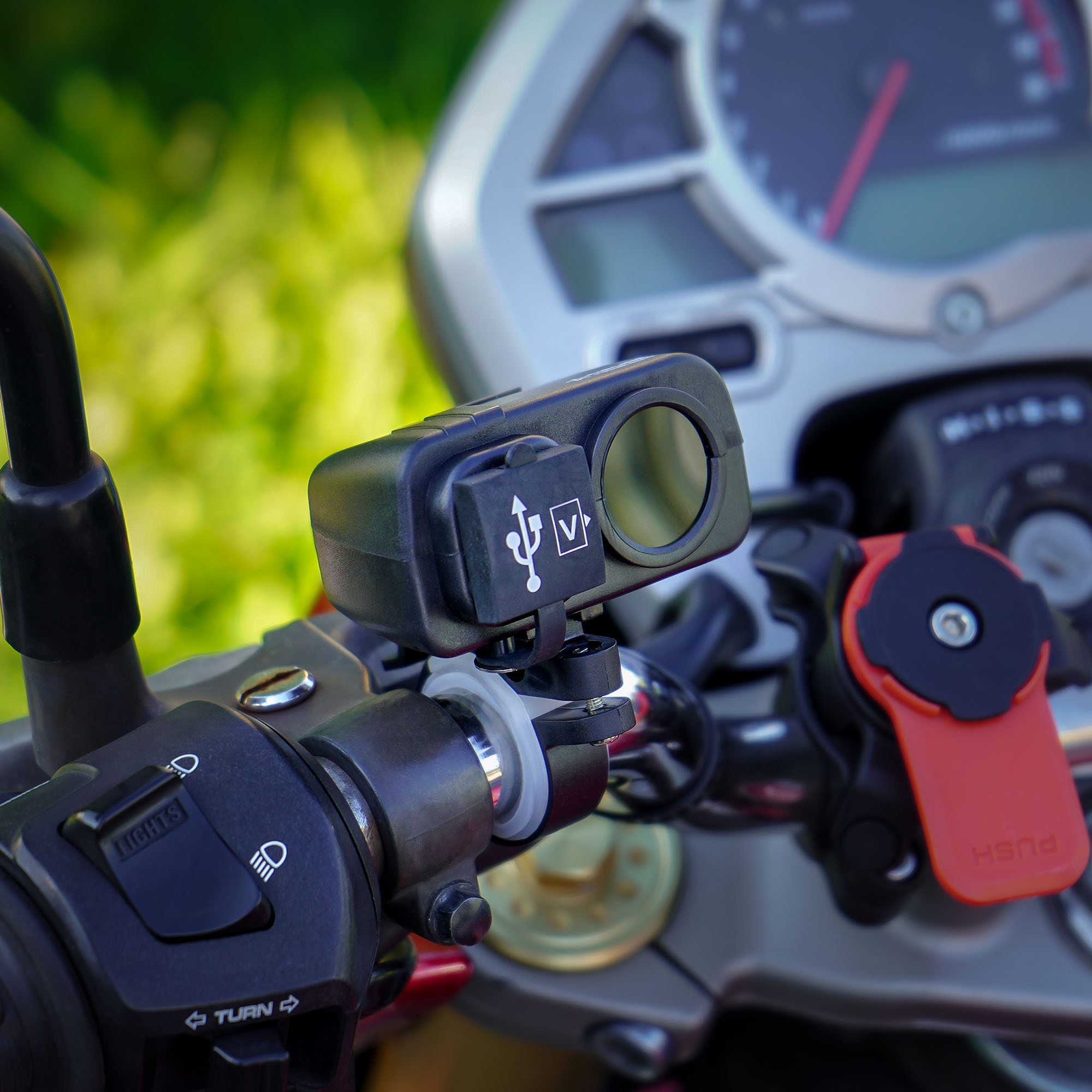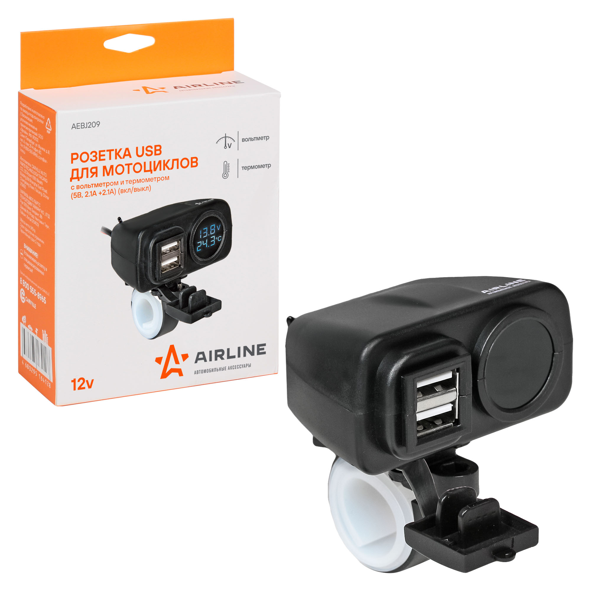 Устройство оборудовано заглушкой блока USB и прикуривателя, чтобы влага не попала в розетку. Также розетка оборудована вольтметром, что позволит вам следить за напряжением бортовой сети.