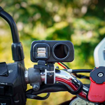 Влагозащищённая розетка USB для мотоциклов, устанавливается на руле мотоцикла, скутера, квадроцикла. Подключается к аккумулятору, рабочий ток 12 Вольт.