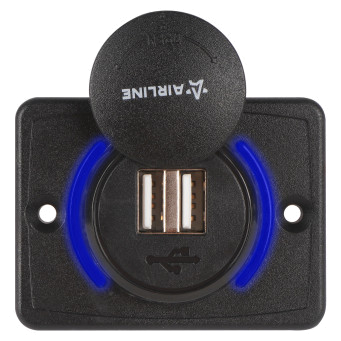 Накладная розетка USB устанавливается в салоне автомобиля или другого транспортного средства. Подключается к бортовой сети автомобиля 12/24 Вольт. Позволяет заряжать мобильные устройства от двух портов USB с суммарным током 3.1А.