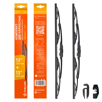 Каркасная конструкция щетки стеклоочистителя — это качество, проверенное десятилетиями. Такие щетки являются самыми доступными по цене, обладает высокой прочностью, и лучшими показателями прилегания резинок к стеклу автомобиля. К классической форме щетки производители AIRLINE добавили изменения в составе резины, позволяющие продлить ее срок использования. В комплект добавленны адаптеры подходящие для 2-х типов крепления: "крючок" HOOK 9x3/9x4 и HOOK 8x3 для установки на самые распространенные марки автомобиля.
