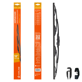 Каркасная конструкция щетки стеклоочистителя — это качество, проверенное десятилетиями. Такие щетки являются самыми доступными по цене, обладает высокой прочностью, и лучшими показателями прилегания резинок к стеклу автомобиля. К классической форме щетки производители AIRLINE добавили изменения в составе резины, позволяющие продлить ее срок использования. В комплект добавленны адаптеры подходящие для 2-х типов крепления: "крючок" HOOK 9x3/9x4 и HOOK 8x3 для установки на самые распространенные марки автомобиля.