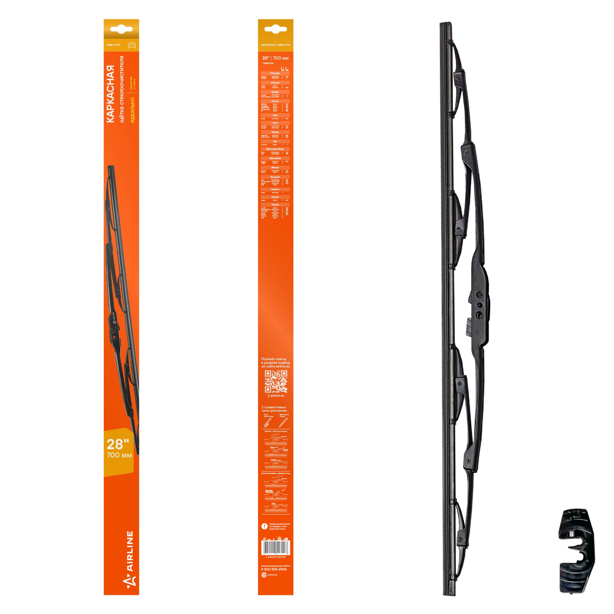 Каркасная конструкция щетки стеклоочистителя — это качество, проверенное десятилетиями. Такие щетки являются самыми доступными по цене, обладает высокой прочностью, и лучшими показателями прилегания резинок к стеклу автомобиля. К классической форме щетки производители AIRLINE добавили изменения в составе резины, позволяющие продлить ее срок использования. В комплект добавлен адаптер подходящий для крепления: "крючок" HOOK 9x3/9х4 для установки на самые распространенные марки автомобиля.