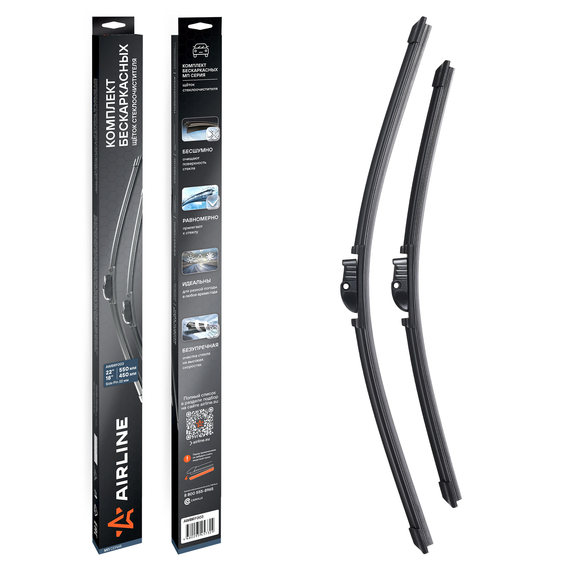 Использование высококачественных материалов делает щётки долговечными и устойчивыми к перепадам температур, ультрафиолету и влаге. Усовершенствованная аэродинамическая конструкция гарантирует тихую, плавную работу без вибраций и скрипов — даже на высокой скорости.