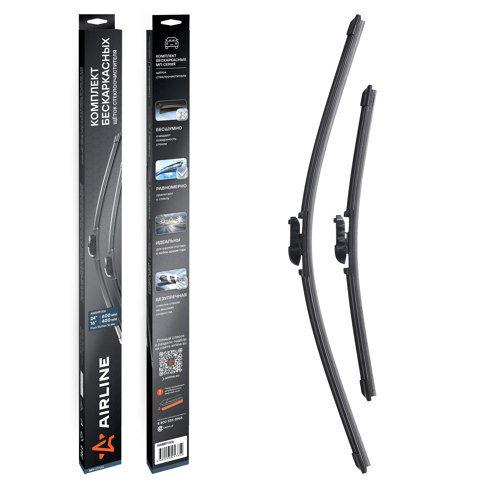 Использование высококачественных материалов делает щётки долговечными и устойчивыми к перепадам температур, ультрафиолету и влаге. Усовершенствованная аэродинамическая конструкция гарантирует тихую, плавную работу без вибраций и скрипов — даже на высокой скорости.