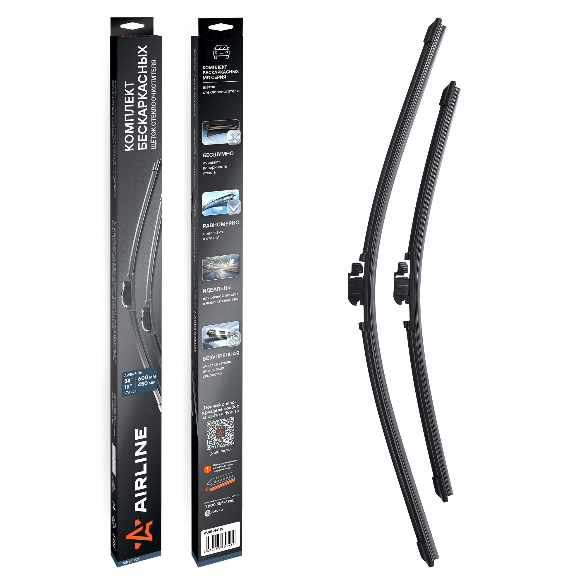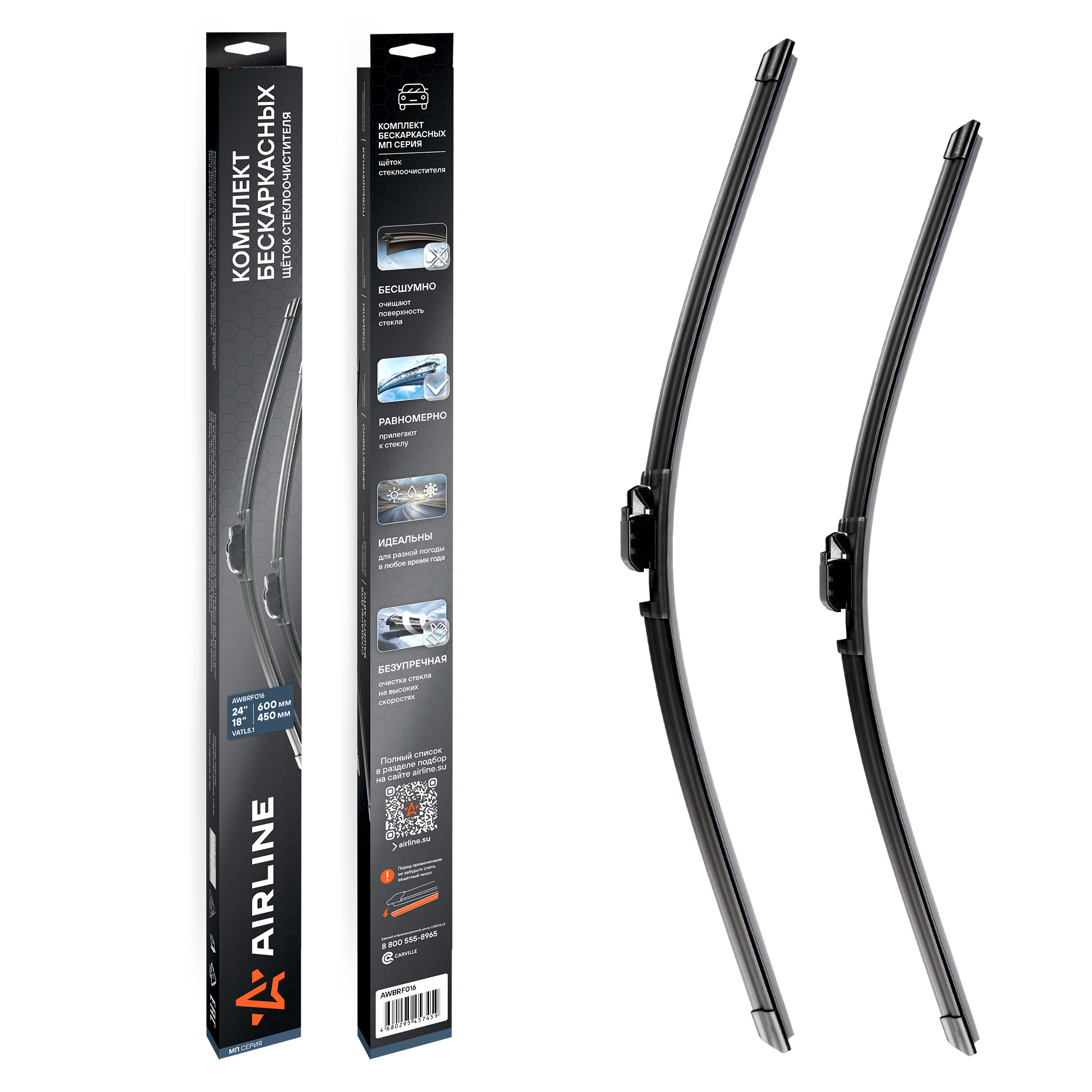 Использование высококачественных материалов делает щётки долговечными и устойчивыми к перепадам температур, ультрафиолету и влаге. Усовершенствованная аэродинамическая конструкция гарантирует тихую, плавную работу без вибраций и скрипов — даже на высокой скорости.