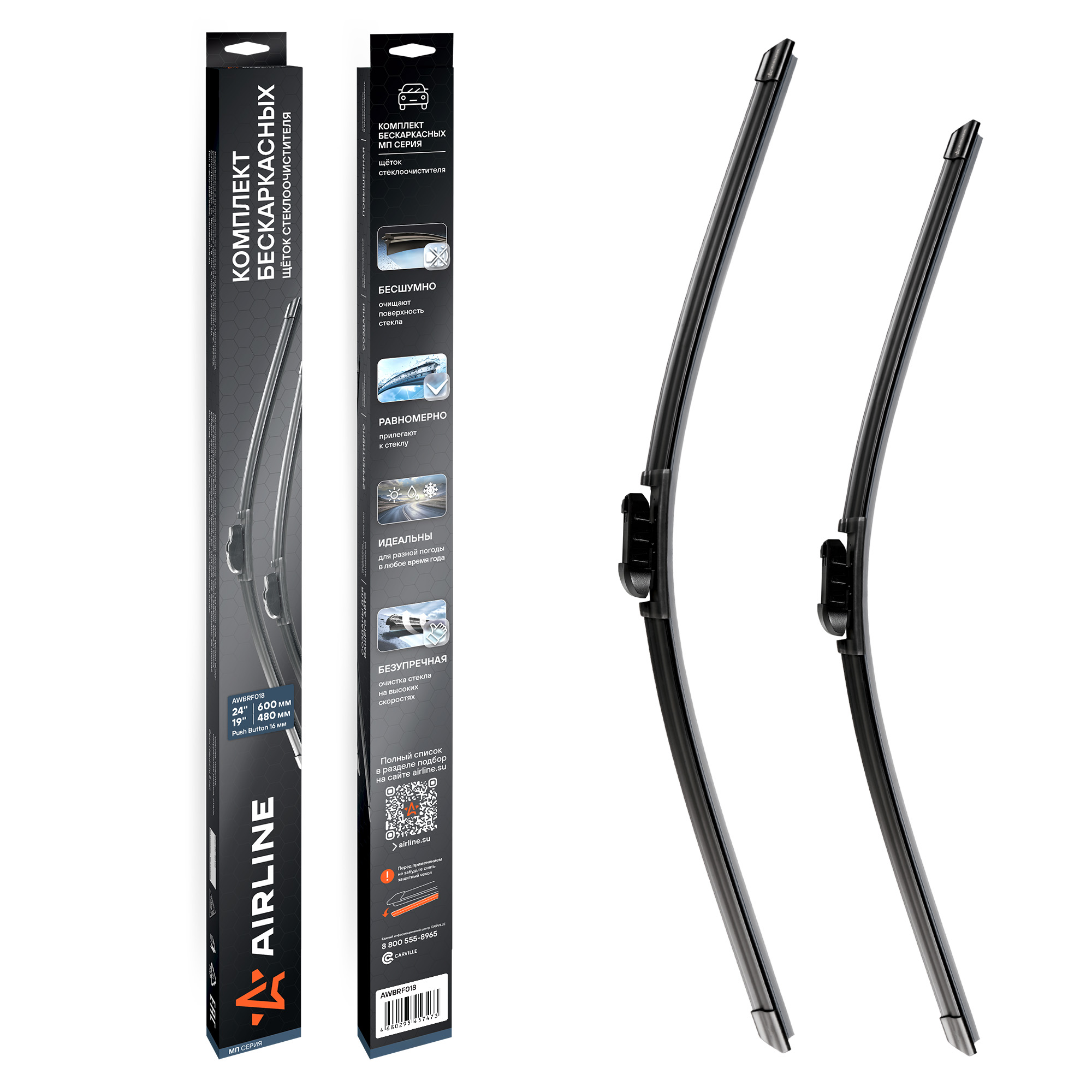Использование высококачественных материалов делает щётки долговечными и устойчивыми к перепадам температур, ультрафиолету и влаге. Усовершенствованная аэродинамическая конструкция гарантирует тихую, плавную работу без вибраций и скрипов — даже на высокой скорости.