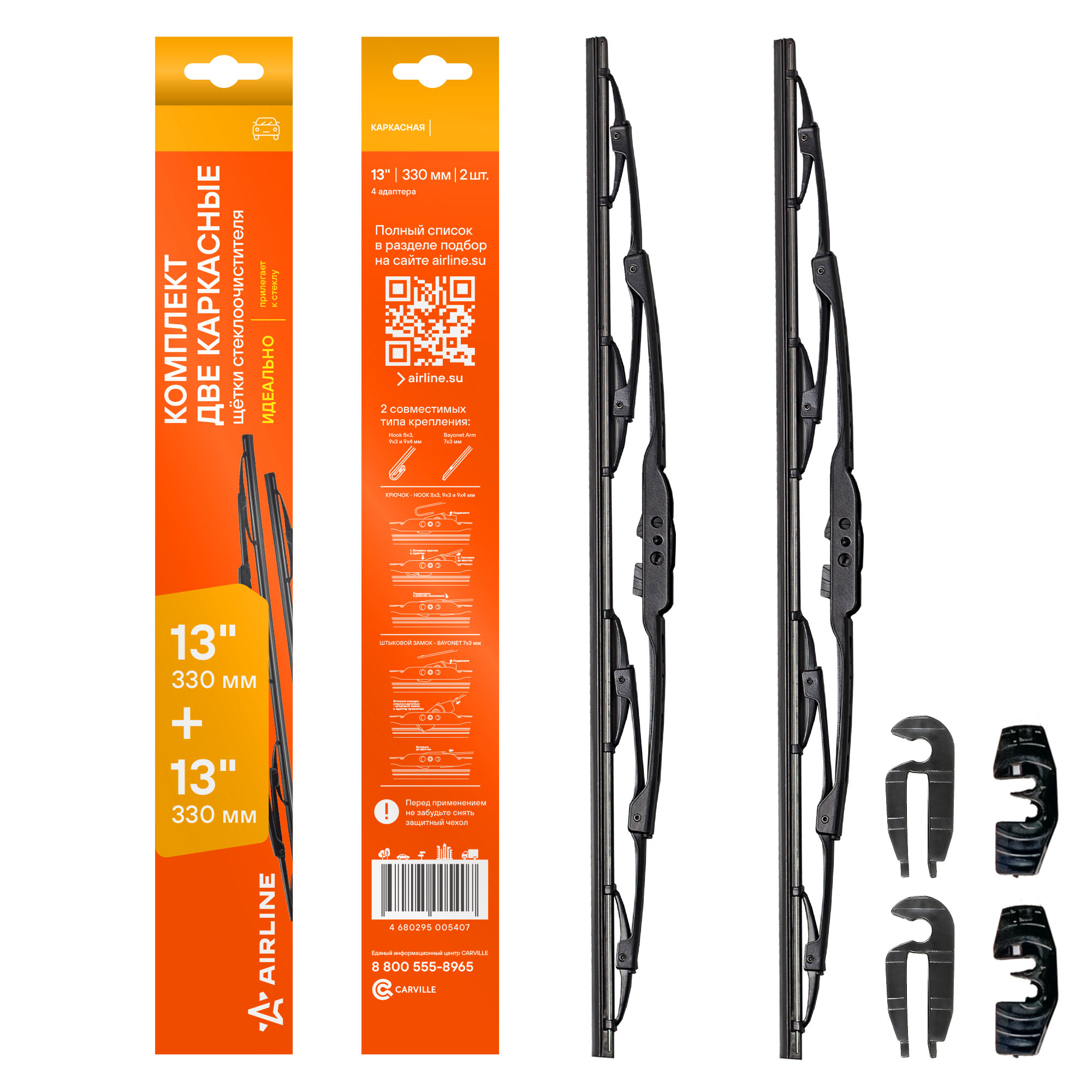 Комплекты каркасных щёток стеклоочистителя AIRLINE с креплением «крючок» 9х3 и 9х4 мм — это надежная классика, обеспечивающая безупречную чистоту лобового стекла. Прочный металлический каркас с системой коромысел гарантирует плотное и равномерное прилегание чистящего полотна, эффективно удаляя воду и грязь без пропусков и разводов. Благодаря универсальному адаптеру Hook, щётки легко устанавливаются на большинство автомобилей без дополнительных инструментов.