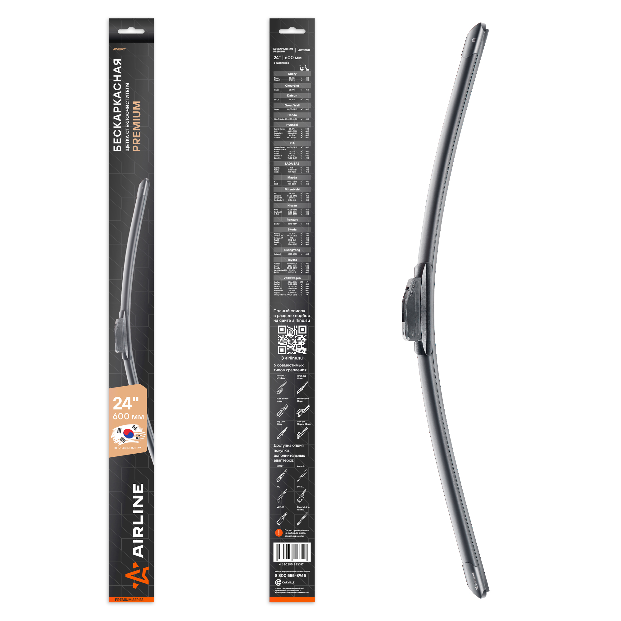 Обеспечьте своему автомобилю выдающуюся защиту и ясное видение с бескаркасной щеткой стеклоочистителя PREMIUM от бренда AIRLINE. Наша передовая конструкция гарантирует превосходную очистку, долговечность и бесшумную работу, используя резинку из натурального каучука. Это стильное и качественное решение создано для комфортного и безопасного вождения в любых погодных условиях. Поднимите стандарты ухода за вашим автомобилем с PREMIUM – выбором, который сочетает в себе эффективность, долговечность и стиль.