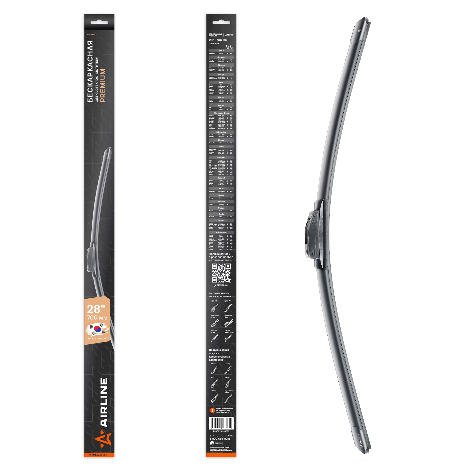 Обеспечьте своему автомобилю выдающуюся защиту и ясное видение с бескаркасной щеткой стеклоочистителя PREMIUM от бренда AIRLINE. Наша передовая конструкция гарантирует превосходную очистку, долговечность и бесшумную работу, используя резинку из натурального каучука. Это стильное и качественное решение создано для комфортного и безопасного вождения в любых погодных условиях. Поднимите стандарты ухода за вашим автомобилем с PREMIUM – выбором, который сочетает в себе эффективность, долговечность и стиль.