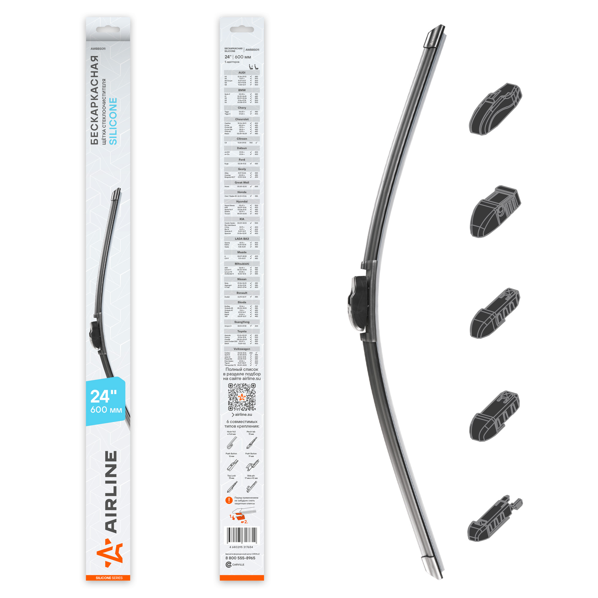 Щетки стеклоочистителя Airline, выполненные из силиконовой резинки, представляют собой инновационное решение для обеспечения безупречной чистоты вашего автомобильного стекла. Силиконовая резинка, используемая в этих щетках, превосходит натуральную резинку по ряду параметров: она обеспечивает более долгий срок службы, устойчива к ультрафиолету, экстремальным температурам и озону, что предотвращает растрескивание и быстрое старение. Силикон также отличается улучшенными гидрофобными свойствами, благодаря чему вода легко смывается с лобового стекла, обеспечивая лучшую видимость во время дождя и снегопада. Аэродинамический профиль щеток гарантирует тихую работу при высоких скоростях, что способствует комфорту в длительных поездках. В комплект включены адаптеры для быстрой и простой установки на разнообразные модели автомобилей, а также подробная инструкция, облегчающая процесс монтажа. Выбор силиконовых щеток стеклоочистителя Airline — это инвестиция в долгосрочную эксплуатацию и надежность, гарантирующая отличную видимость и безопасность в любую погоду.