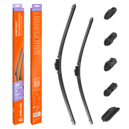 Щетки стеклоочистителя 600/500мм (24"/20") бескаркасные для а/м Toyota Camry (06-14), Great Wall Hovaer (05-10), Kia Sorento II (09-17)/Soul (14-18), Hyundai Starex (07-), Changan UNI-K (20-) Audi Q5 (08-17), комплект, 4 типа адаптеров