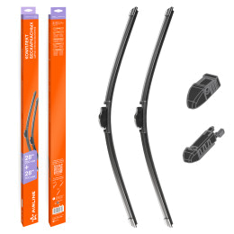 Щетки стеклоочистителя 700/700мм (28"/28") бескаркасные для а/м Ford Kuga II (12-20), Volkwagen Golf Plus (05-08)/Sharan (01-10)/Touran (03-10), Mercedes-Benz S-Class (00-05), Peugeot 407 (04-11), комплект, 2 типа адаптера