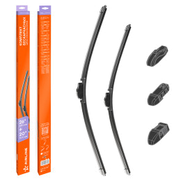 Щетки стеклоочистителя 600/530мм (24"/21") бескаркасные для а/м Volkswagen Tiguan (07-17), Mitsubishi ASX (10-)/Outlander II (06-12), Skoda Kodiaq (16-), Changan CS95 (17-), Mercedes-Benz Sprinter (95-06), комплект, 3 типа адаптеров