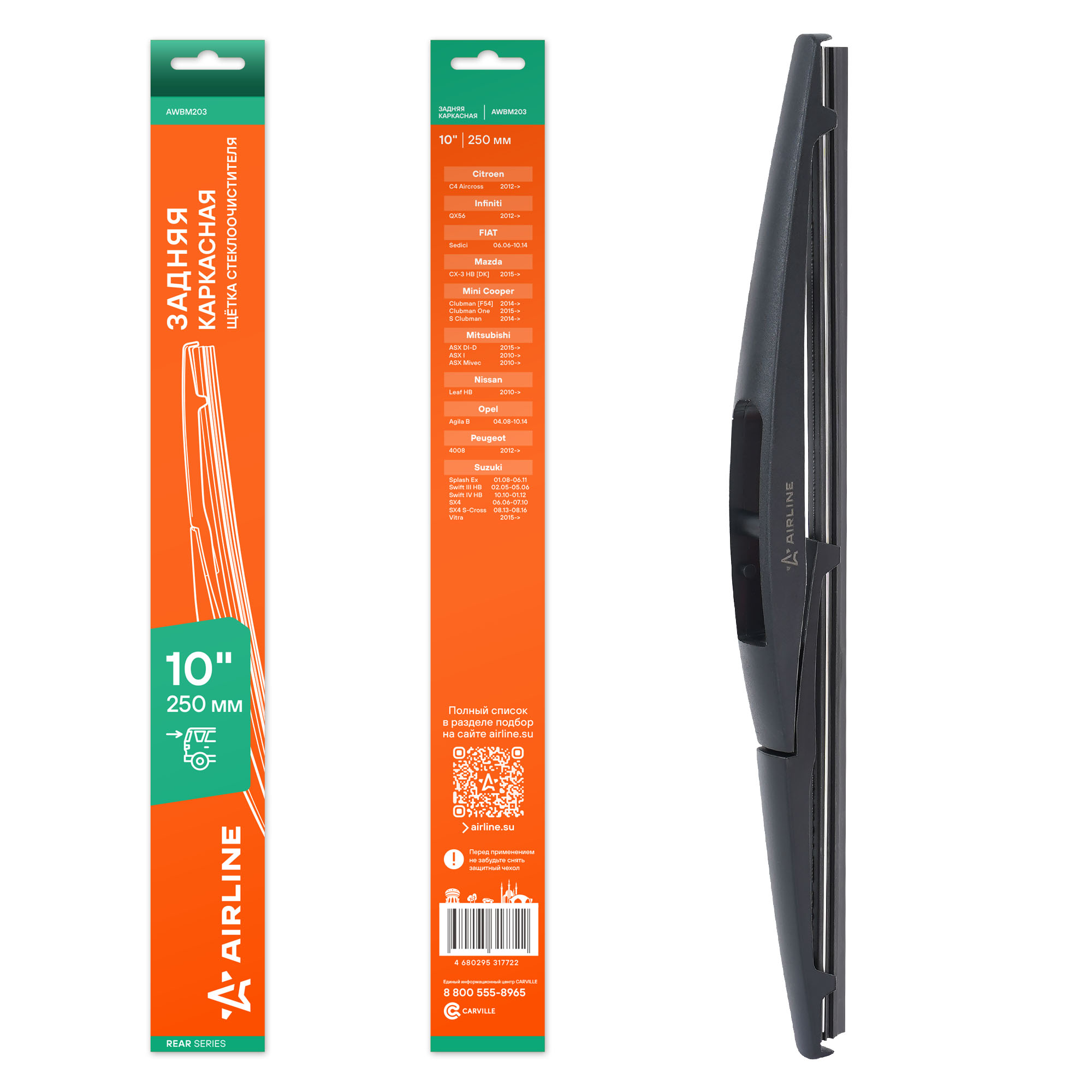 Задние щетки стеклоочистителя от AIRLINE представляют собой высококачественное решение для обеспечения идеальной видимости через заднее стекло вашего автомобиля. Эти модельные щетки разработаны с прочной каркасной конструкцией из пластика, которая гарантирует долговечность и надежность в использовании. Пластиковый каркас не только легкий, но и устойчив к коррозии и воздействию химических реагентов, что делает щетки особенно подходящими для использования в различных климатических условиях.