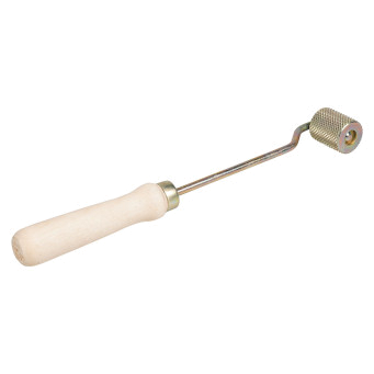 Инструмент, обеспечивающий качественный и удобный монтаж вибропоглощающих материалов к кузову автомобиля. Металлический ролик, снабженный насечкой предотвращающей скольжение по алюминиевой фольге, предназначен для обеспечения максимально плотного контакта между вибродемпфирующим материалом и поверхностью кузова автомобиля. Все поверхности перед монтажом должны быть очищены от пыли, грязи, ржавчины, обезжирены и высушены.