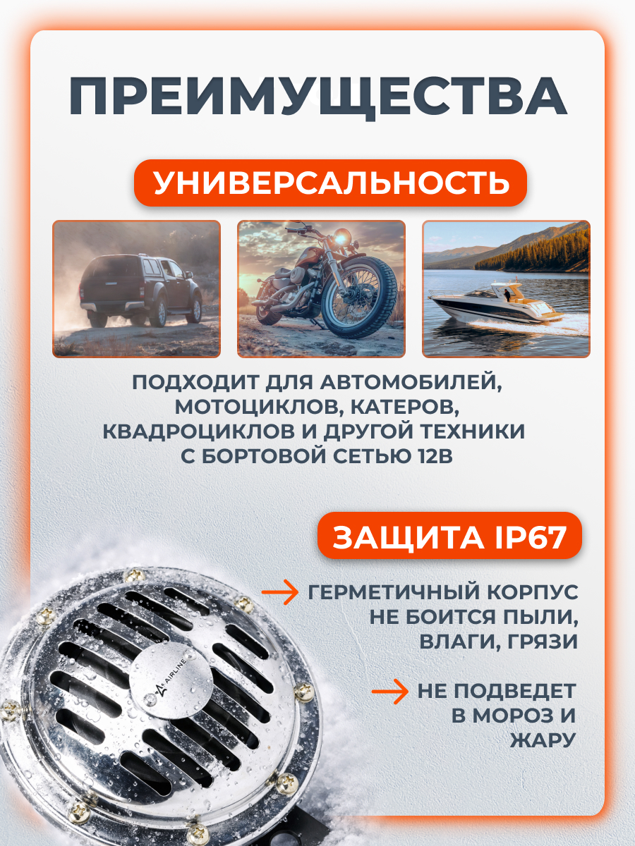 Используйте звуковые сигналы AIRLINE для замены вышедших из строя штатных сигналов или в качестве элемента тюнинга.