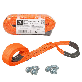 Буксировочный трос AIRLINE 5 тонн 4 метра с шаклами — это идеальный выбор для тех, кто ищет надежность и дополнительную прочность при буксировке автомобилей. Шаклы обеспечивают надежное и безопасное соединение троса с транспортируемым автомобилем, что особенно важно при интенсивных нагрузках. Изготовленный из высокопрочной полиэфирной нити, этот трос гарантирует отличную прочность, он устойчивость к воздействию влаги, ультрафиолетового излучению и морозу. Легко сматываемый в компактный рулон, этот трос удобно хранить в багажнике, он не занимает лишнего места, и отлично подходит для использования в любых климатических условиях.