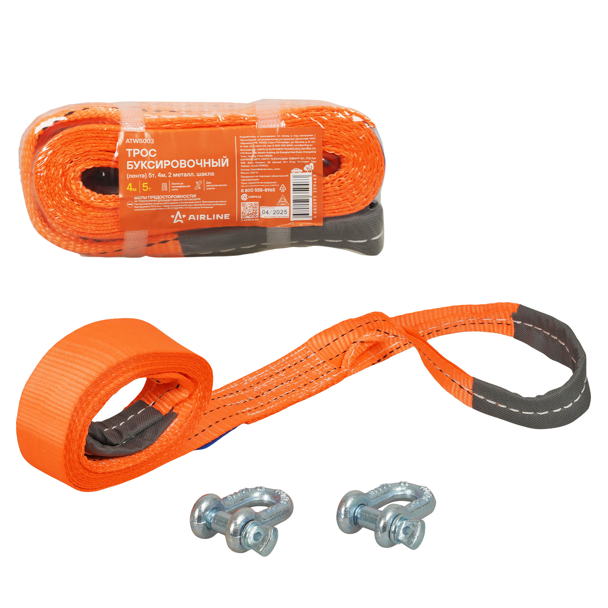 Буксировочный трос AIRLINE 5 тонн 4 метра с шаклами — это идеальный выбор для тех, кто ищет надежность и дополнительную прочность при буксировке автомобилей. Шаклы обеспечивают надежное и безопасное соединение троса с транспортируемым автомобилем, что особенно важно при интенсивных нагрузках. Изготовленный из высокопрочной полиэфирной нити, этот трос гарантирует отличную прочность, он устойчивость к воздействию влаги, ультрафиолетового излучению и морозу. Легко сматываемый в компактный рулон, этот трос удобно хранить в багажнике, он не занимает лишнего места, и отлично подходит для использования в любых климатических условиях.