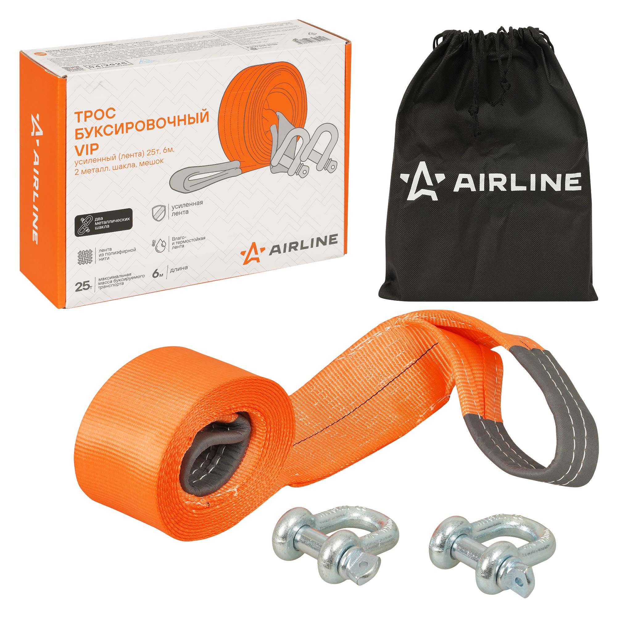 Буксировочный трос AIRLINE в VIP линейке 25 тонн 6 метров с шаклами — для тех, кто ценит высший уровень надежности и долговечности при буксировке. Шаклы, использующиеся в этой модели, обеспечивают надежное и безопасное соединение с автомобилем, даже при высоких нагрузках. Трос выполнен из высококачественной полиэфирной нити, которая обладает исключительной прочностью и устойчивостью к воздействию влаги, ультрафиолетовых лучей и низких температур. В отличие от стандартных моделей, этот трос имеет более высокую разрывную нагрузку, что делает его идеальным для более интенсивных и требовательных условий эксплуатации. В комплект входит удобный мешок для хранения, который помогает компактно сложить трос и удобно разместить его в багажнике. Легко сматываемый в компактный рулон, он не занимает много места, предоставляя удобство в хранении и транспортировке.