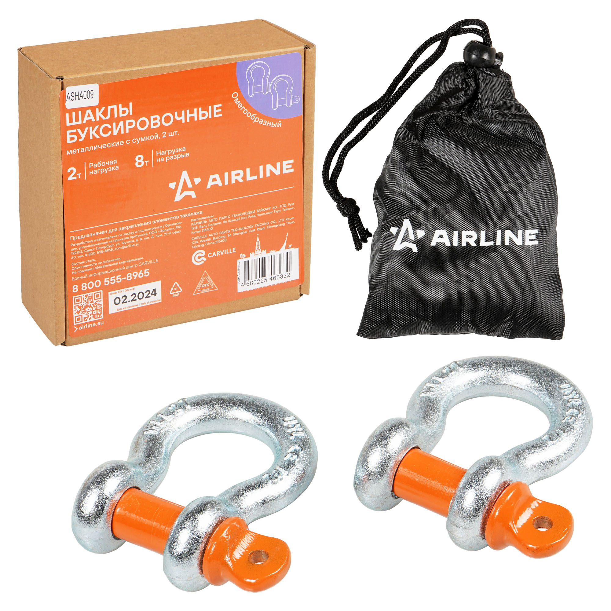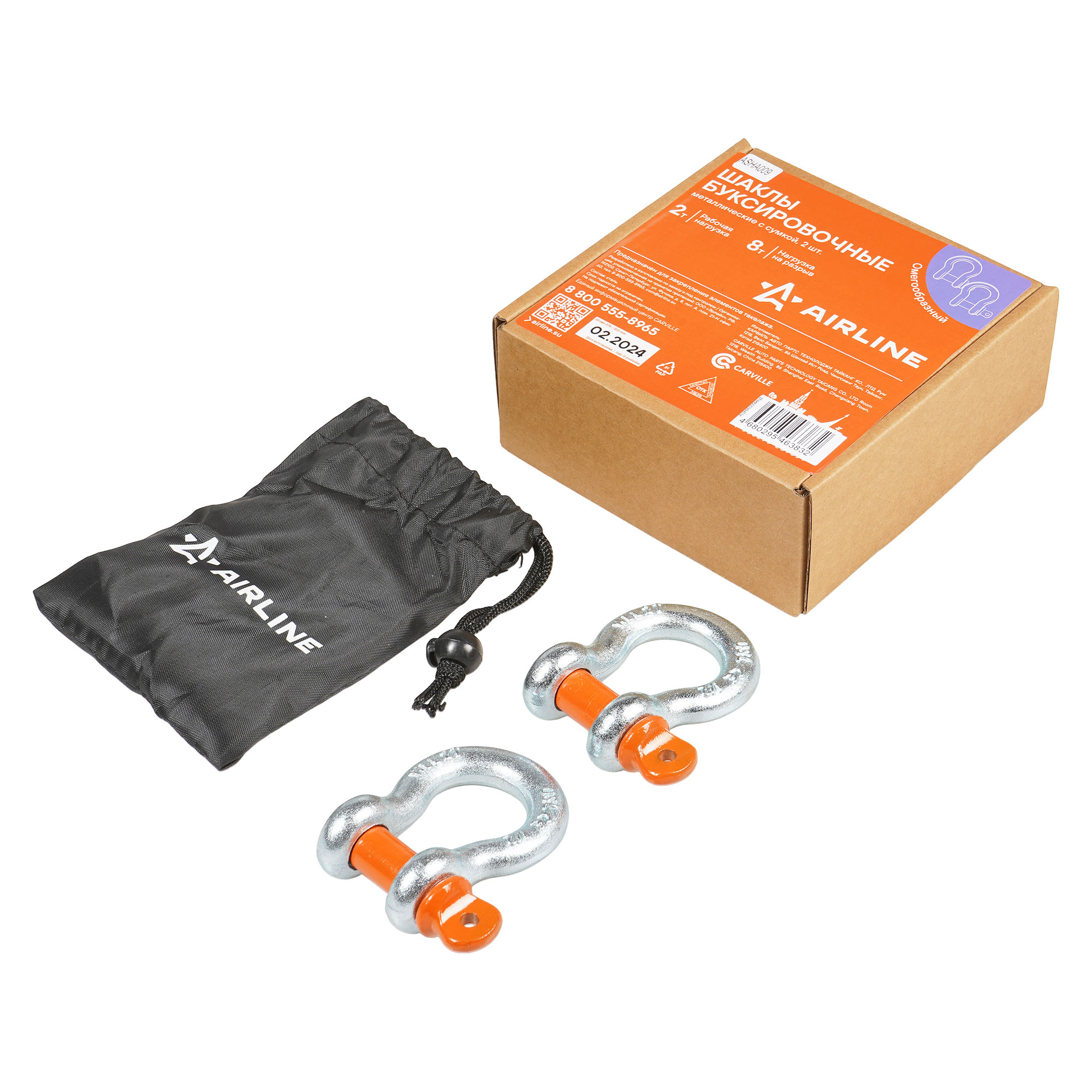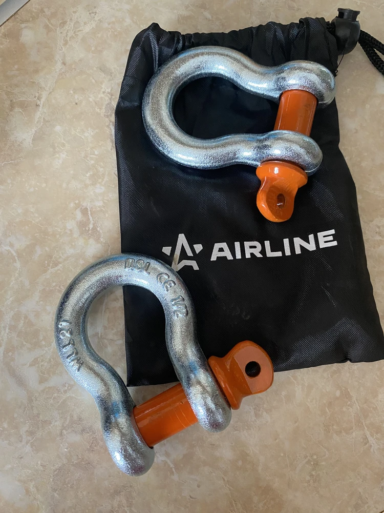 Шаклы буксировочные омегообразные с резьбой Airline в наборе, который состоит из 2 шт., представляют собой надежное и высокопрочное изделие, широко используемое для соединения элементов такелажа, динамических, буксировочных тросов, закрепления блоков или других частей грузовой оснастки, где требуется надежное крепление. Изготовлены из технологичной стали, обеспечивающей высокий коэффициент запаса прочности - х4. Технология гальванического покрытия защищает изделия от коррозии без применения сварки.