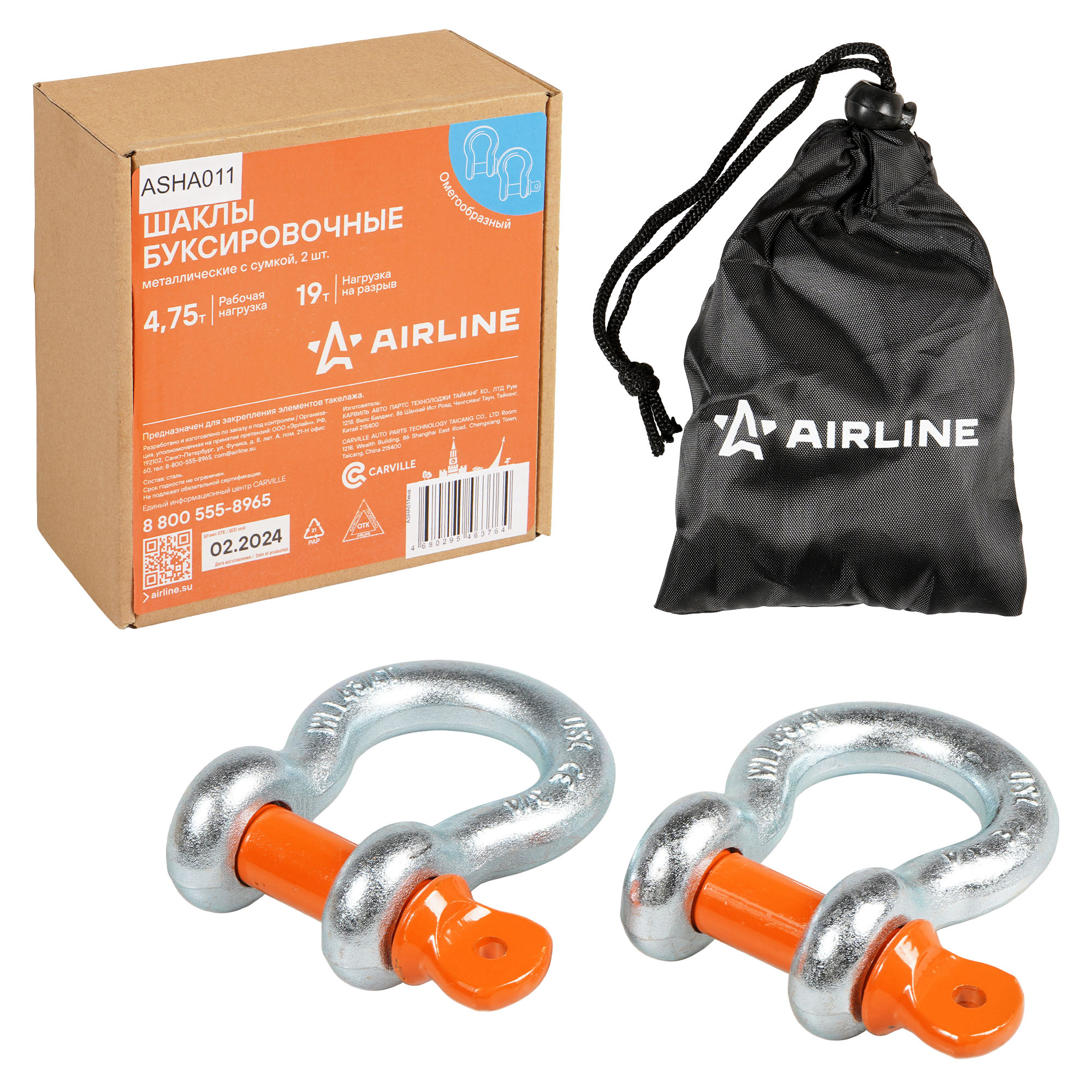 Шаклы буксировочные омегообразные с резьбой Airline в наборе, который состоит из 2 шт., представляют собой надежное и высокопрочное изделие, широко используемое для соединения элементов такелажа, динамических, буксировочных тросов, закрепления блоков или других частей грузовой оснастки, где требуется надежное крепление. Изготовлены из технологичной стали, обеспечивающей высокий коэффициент запаса прочности - х4. Технология гальванического покрытия защищает изделия от коррозии без применения сварки.