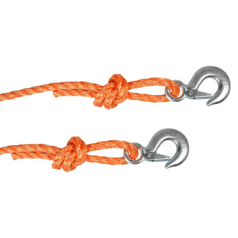 Буксировочный канат оранжевого цвета, спроектированный для перевозки легковых автомобилей и другой малогабаритной техники, представляет собой надежное средство для аварийной буксировки.