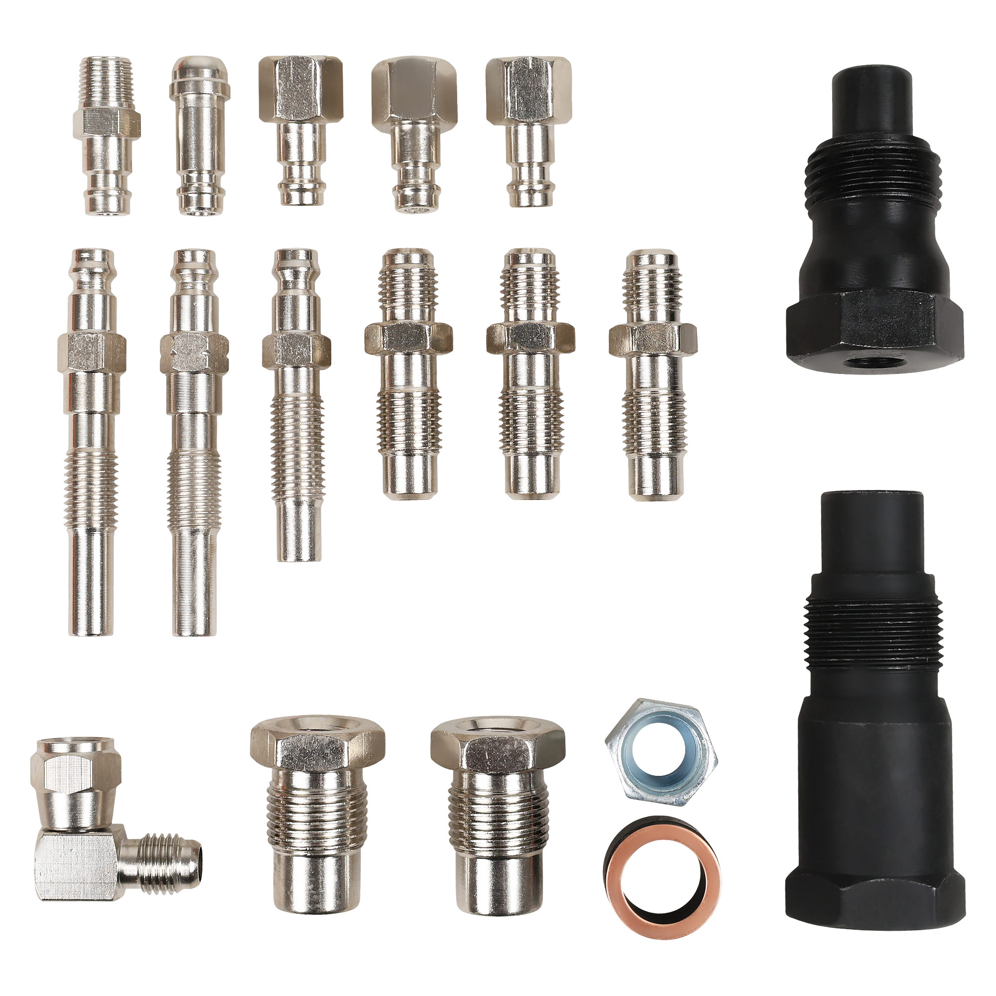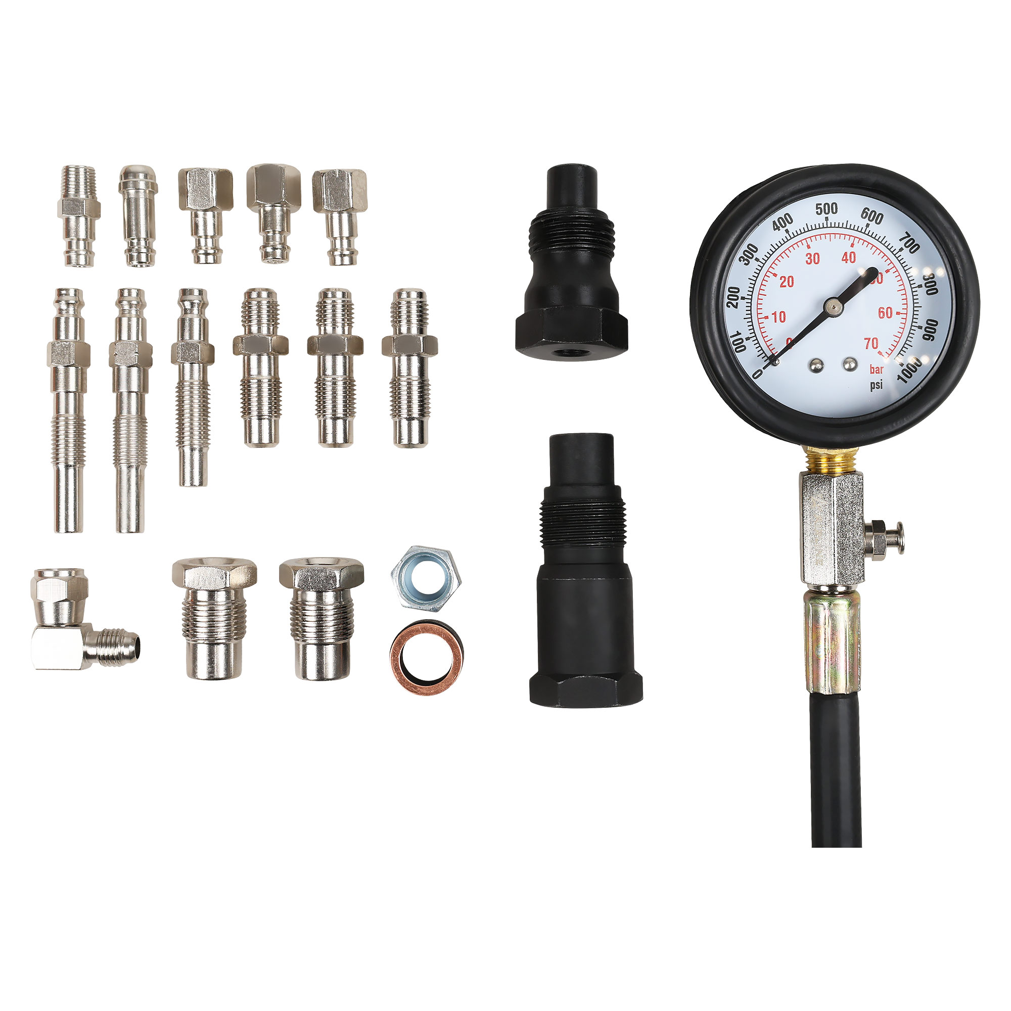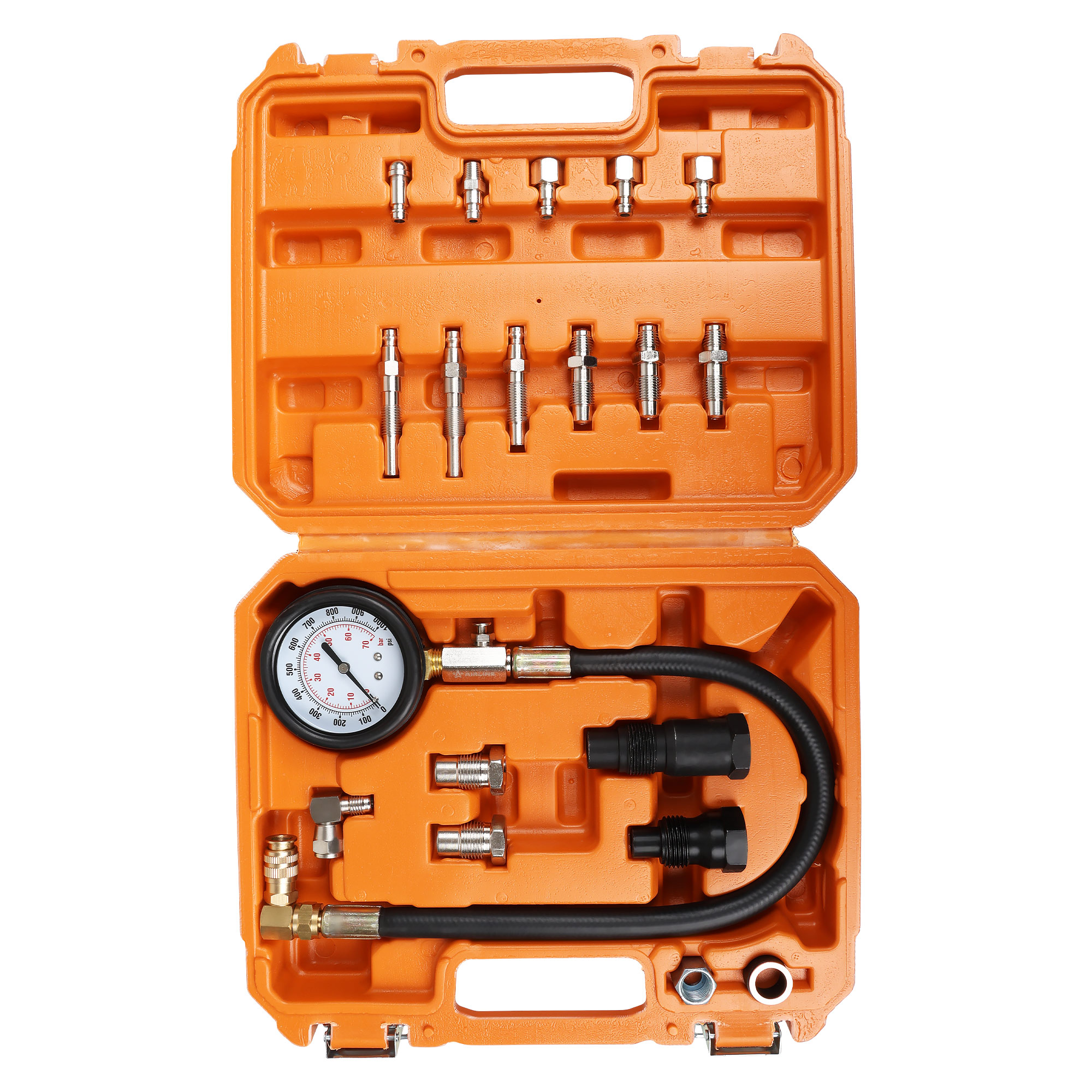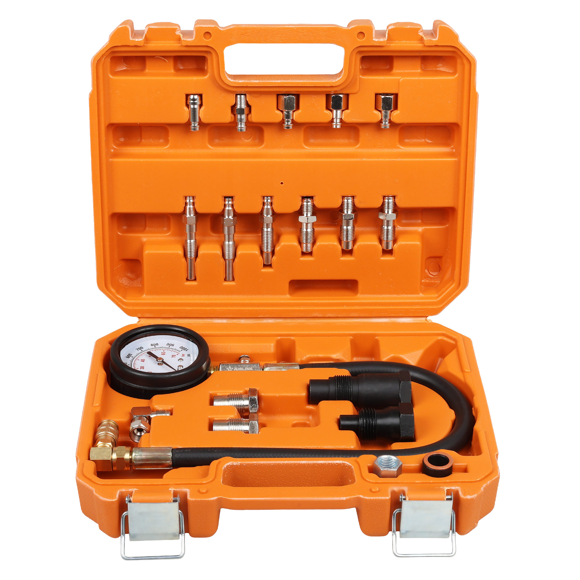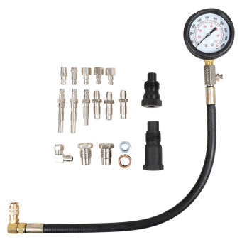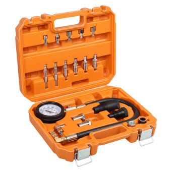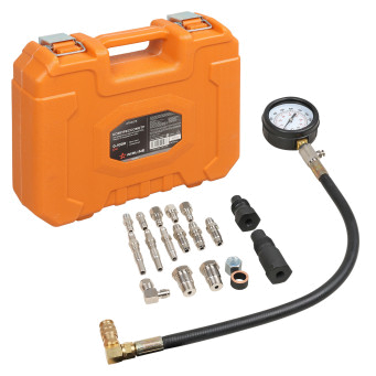 Профессиональный компрессометр для дизельных двигателей предназначен для точного измерения давления сжатия в цилиндрах. Подходит для диагностики большинства дизельных двигателей легковых и коммерческих автомобилей. Набор включает 19 предметов, в том числе адаптеры для форсунок и свечей накаливания различных типоразмеров.