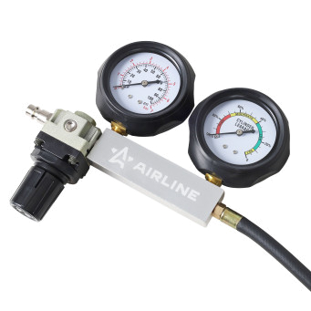 Подключается к воздушной магистрали через встроенный редуктор давления. Измерение производится при помощи двух манометров — один показывает входное давление, второй — давление в камере сгорания.