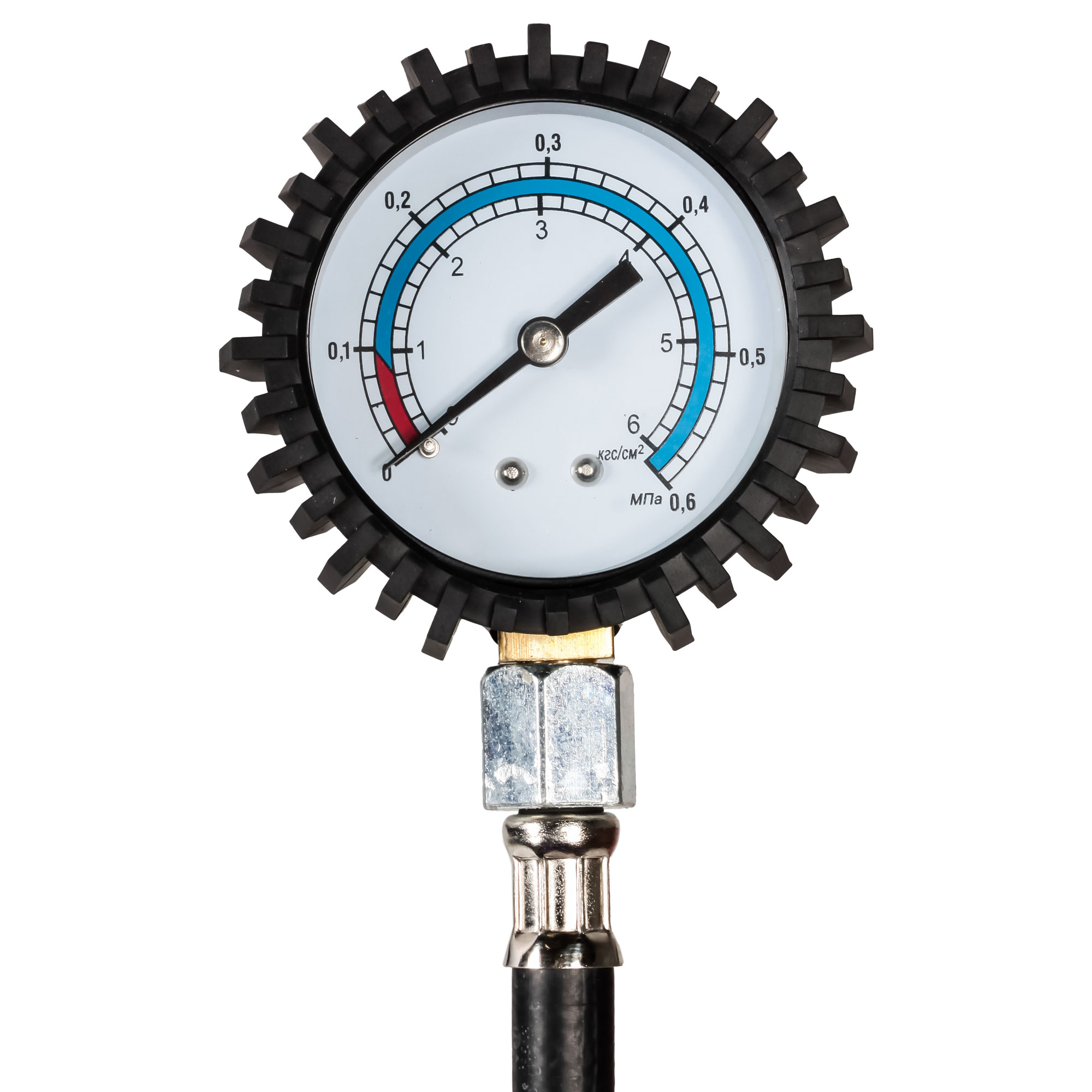 Измеритель состоит из манометра и присоединительной части. Манометр защищён резиновым чехлом.