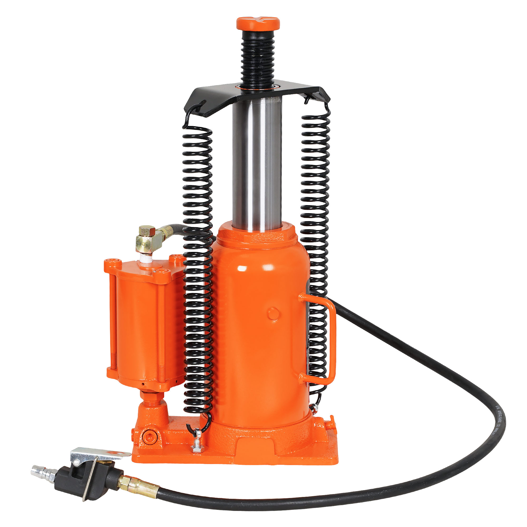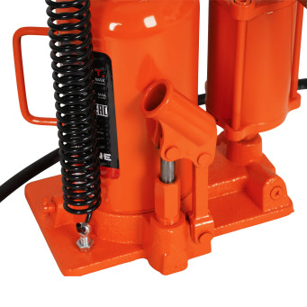 Эта модель домкрата работает от сжатого воздуха при подключении к компрессору. В случае отсутствия компрессора, вы можете воспользоваться ручным приводом гидравлической системы.