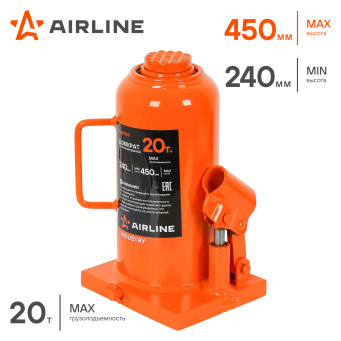 Домкрат бутылочный AIRLINE AJBW12S гидравлический INDUSTRY. Грузоподъемность - 20 т. Высота подхвата - 240 мм. Высота подъема - 450 мм. Благодаря сварной конструкции домкрата, обеспечивает жесткость, исключая перекосы, расшатывание или утечки рабочей жидкости. Широкое и кованное основание домкрата дает устойчивость вовремя подъема груза. Винтовой удлинитель изготовлен из закаленной стали. Полиуретановые кольца, используемые в уплотнениях, обеспечивают высокую износостойкость штока. Морозостойкое масло сохраняет рабочие функции при низких температурах. Оборудование используется при подъеме тяжелой техники: грузовых автомобилей, строительного и сельскохозяйственного оборудования, промышленных агрегатов. Также их применяют на производственных предприятиях, в ремонтных цехах, в сфере строительства.