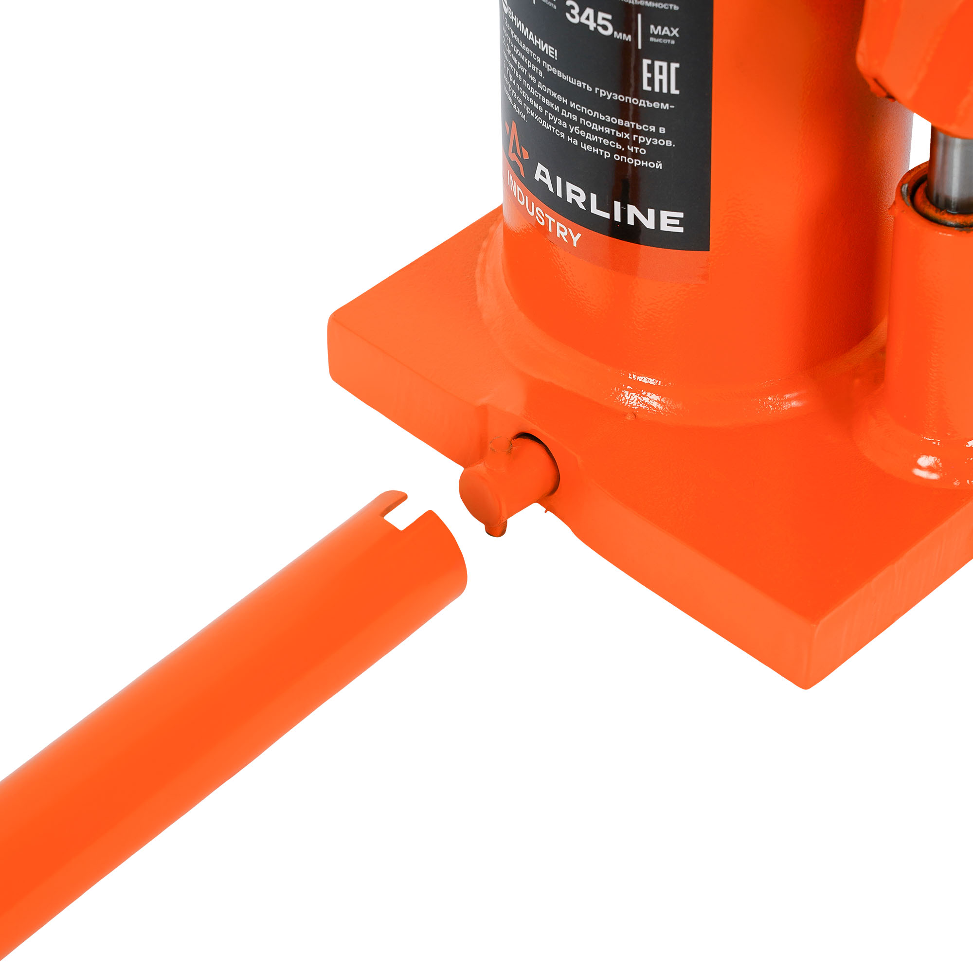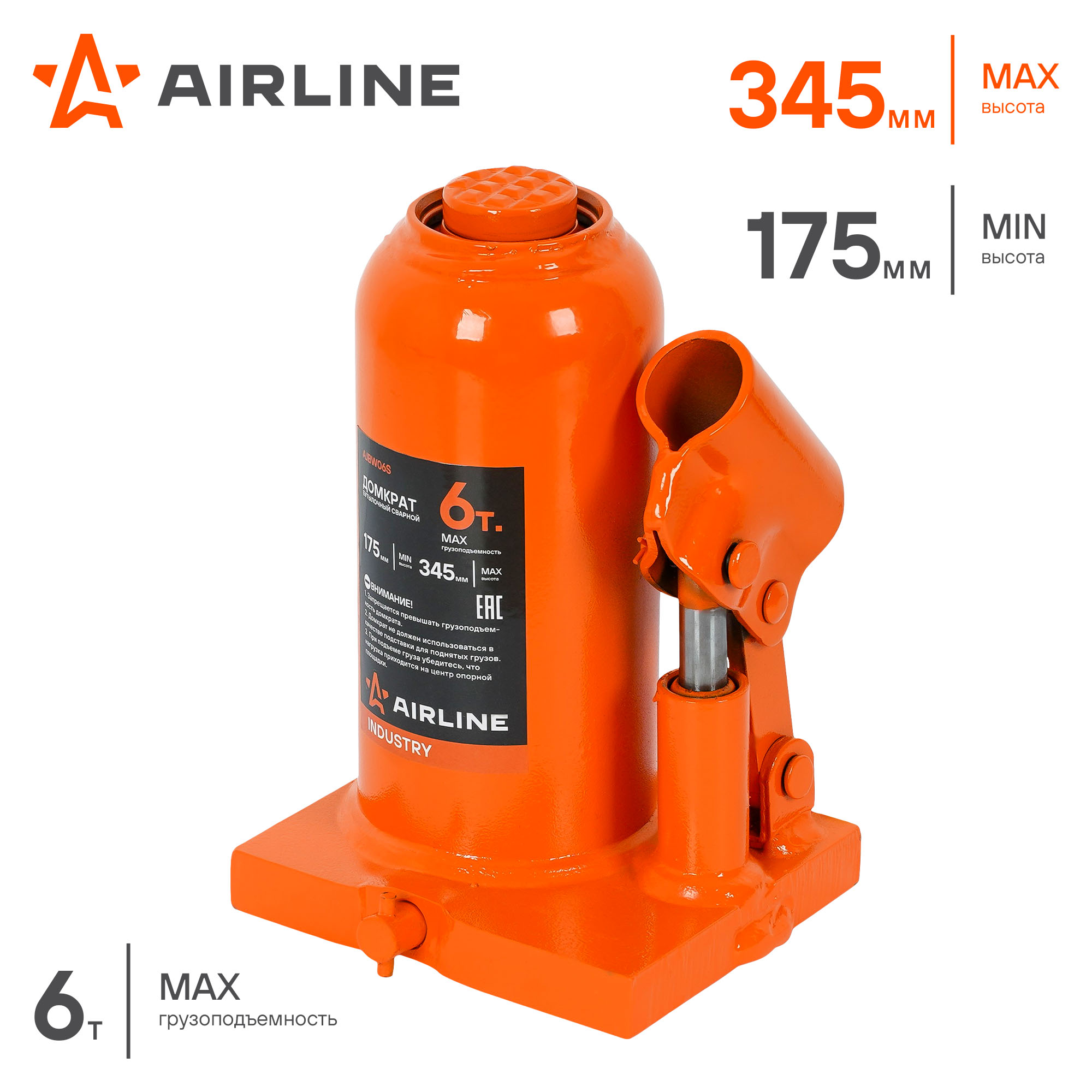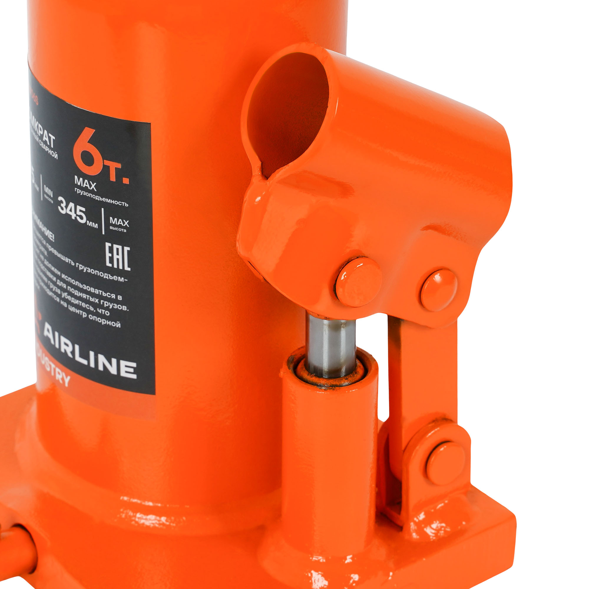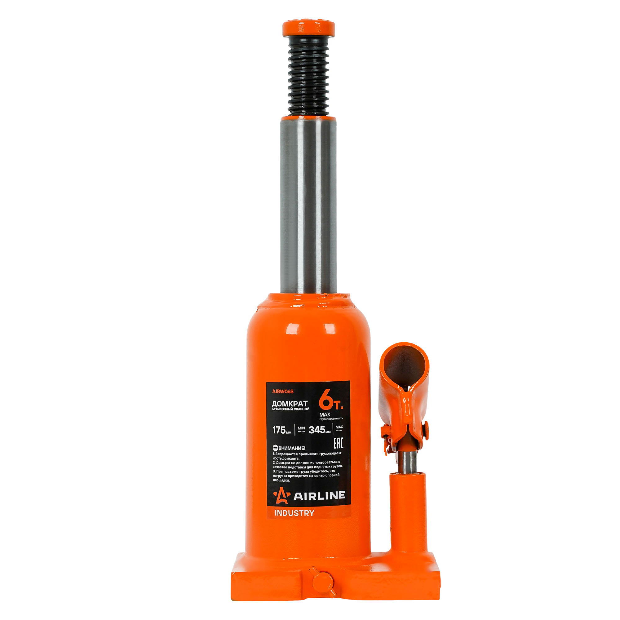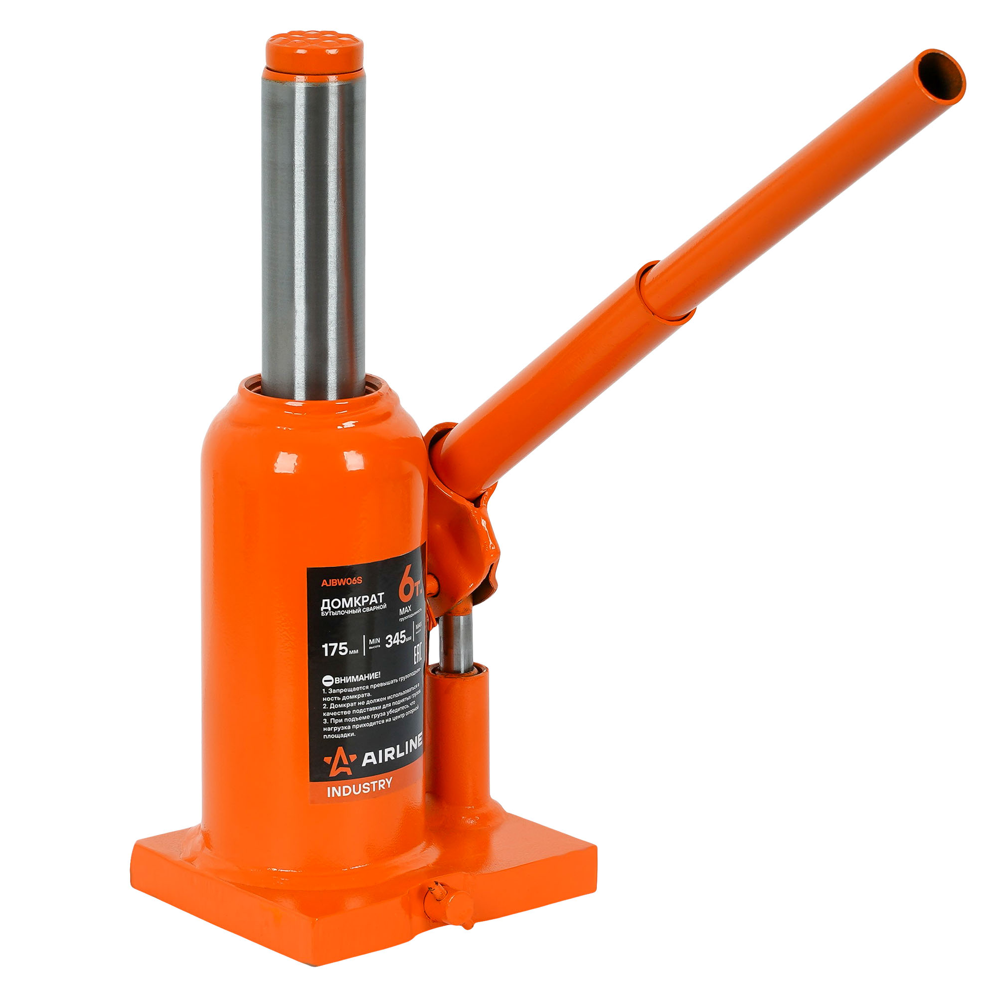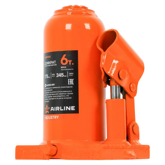 Домкрат бутылочный AIRLINE AJBW06S гидравлический INDUSTRY. Грузоподъемность - 6 т. Высота подхвата - 175 мм. Высота подъема - 345 мм. Благодаря сварной конструкции домкрата, обеспечивает жесткость, исключая перекосы, расшатывание или утечки рабочей жидкости. Широкое и кованное основание домкрата дает устойчивость вовремя подъема груза. Винтовой удлинитель изготовлен из закаленной стали. Полиуретановые кольца, используемые в уплотнениях, обеспечивают высокую износостойкость штока. Морозостойкое масло сохраняет рабочие функции при низких температурах. Оборудование используется при подъеме тяжелой техники: грузовых автомобилей, строительного и сельскохозяйственного оборудования, промышленных агрегатов. Также их применяют на производственных предприятиях, в ремонтных цехах, в сфере строительства.