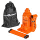 Домкрат телескопический позволяет поднять груз на максимальную высоту среди всех бутылочных домкратов. Благодаря телескопическому штоку, его ход увеличиватеся на 50% (150 мм у обычного 2-х тонного бутылочного домкрата и 230 мм у телескопического). При этом сохранятеся минимальная высота подхвата. Что делает его удобным при использовании для джипов.