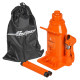 Домкрат телескопический позволяет поднять груз на максимальную высоту среди всех бутылочных домкратов. Благодаря телескопическому штоку, его ход увеличиватеся на 50% (150 мм у обычного 2-х тонного бутылочного домкрата и 230 мм у телескопического). При этом сохранятеся минимальная высота подхвата. Что делает его удобным при использовании для джипов.