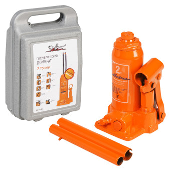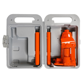 Бутылочные домкраты обладают самыми компактными размерами и простейшей схемой функционирования. Занимает мало места и не требует особых знаний в использовании. Единственное требование – хранение и транспортировка в вертикальном положении. Бутылочные домкраты имеют самый широкий модельный ряд (от 2 до 50т), что делает их незаменимыми при необходимости поднять грузовик или автобус.