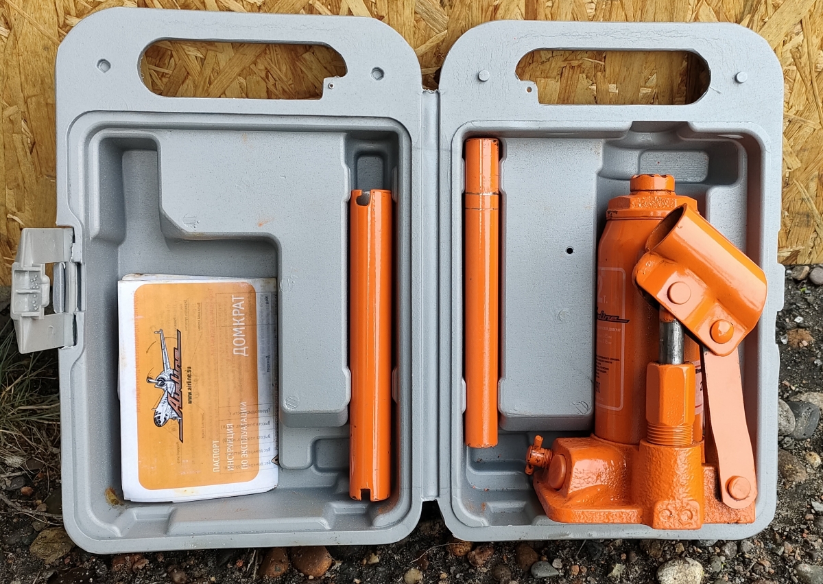 Домкрат пришел в рабочем состоянии, в целом все нормально. Есть огрехи в покраске. Масло нигде не течет. Винт до конца не закручивается, но вроде бы держит давление. Кейс - самый дешёвый пластик, замок надеюсь быстро не сломается.