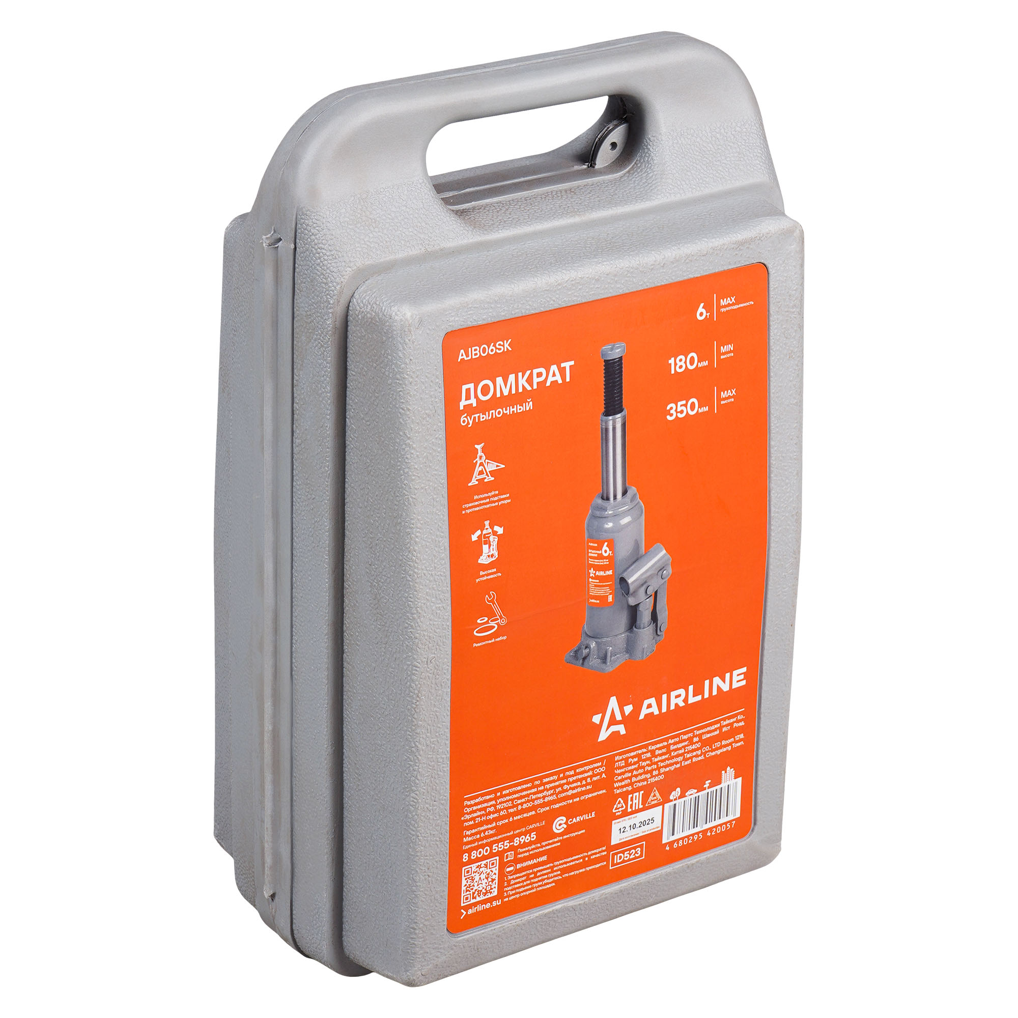 Домкрат бутылочный 6т 180-350мм, кейс