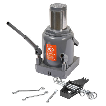 Комплект: Бутылочный домкрат 100т + Набор дюймовых накидных ключей PRO (6 пр., 5/16"–15/16"). Профессиональный комплект для обслуживания тяжёлой техники, промышленного оборудования и машин с дюймовым крепежом. Подходит для автосервисов, строительных и производственных площадок, а также предприятий с импортной техникой.