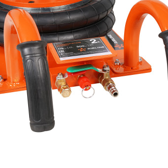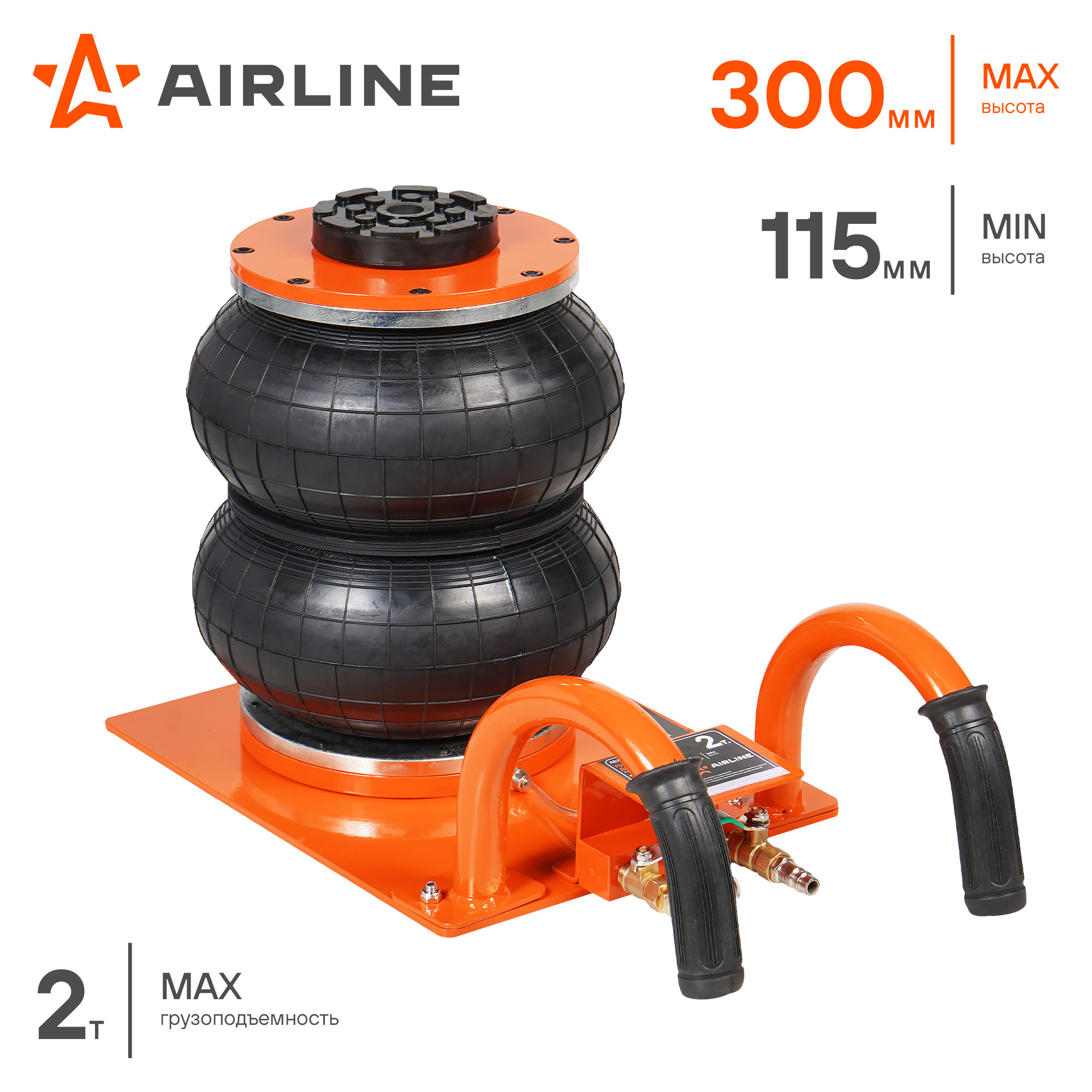 Пневматический 2-секционный домкрат AIRLINE 2т применяется в автосервисах и шиномонтажных мастерских для поднятия автомобиля с целью его ремонта или обслуживания. Сжатый воздух для домкрата можно подавать как от компрессора, так и по магистрали. Для оптимальной работы необходимо давление в 8-12 атм. Благодаря компактным габаритам и малому весу домкрат удобно хранить и транспортировать. Домкрат оснащен широкой прорезиненной опорной чашкой, которая хорошо фиксирует порог автомобиля, не повреждая лакокрасочного покрытия. Прочная конструкция пневматического домкрата имеет долгий срок службы, а качественное лакокрасочное покрытие предотвращает возникновение коррозии.
