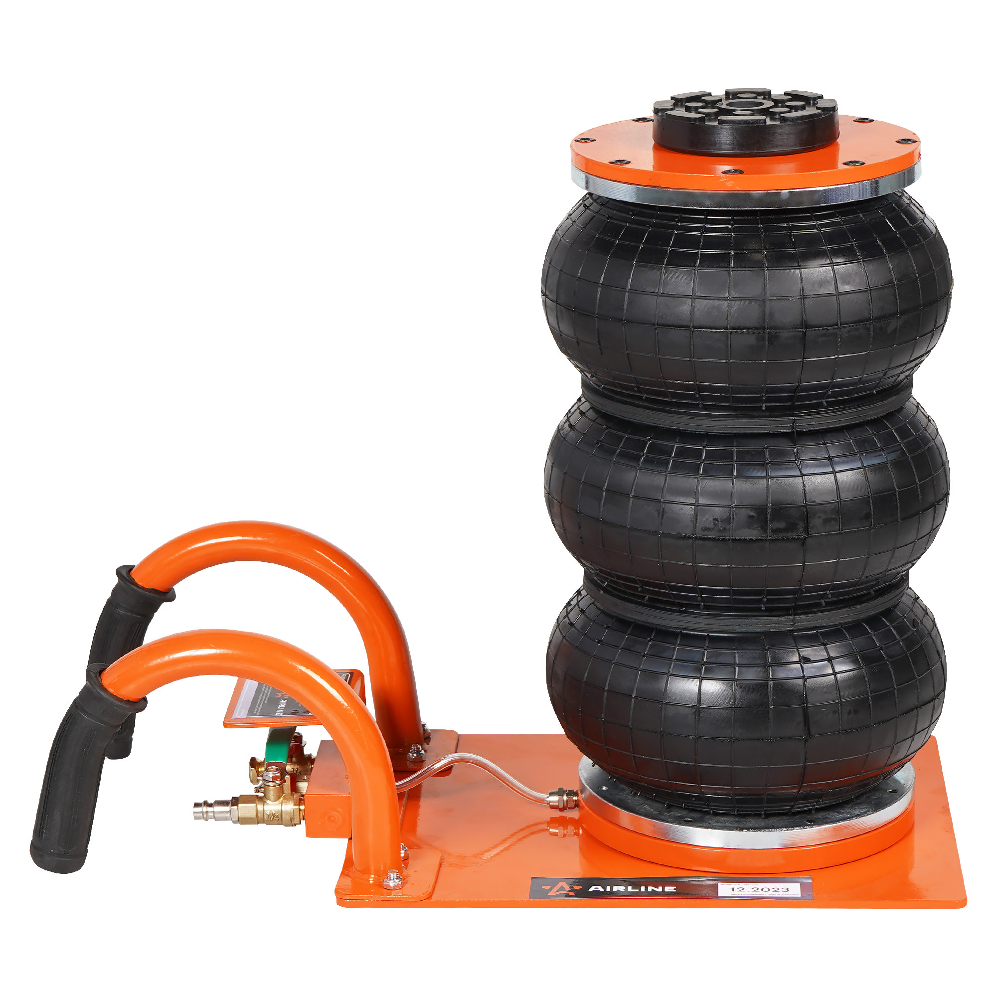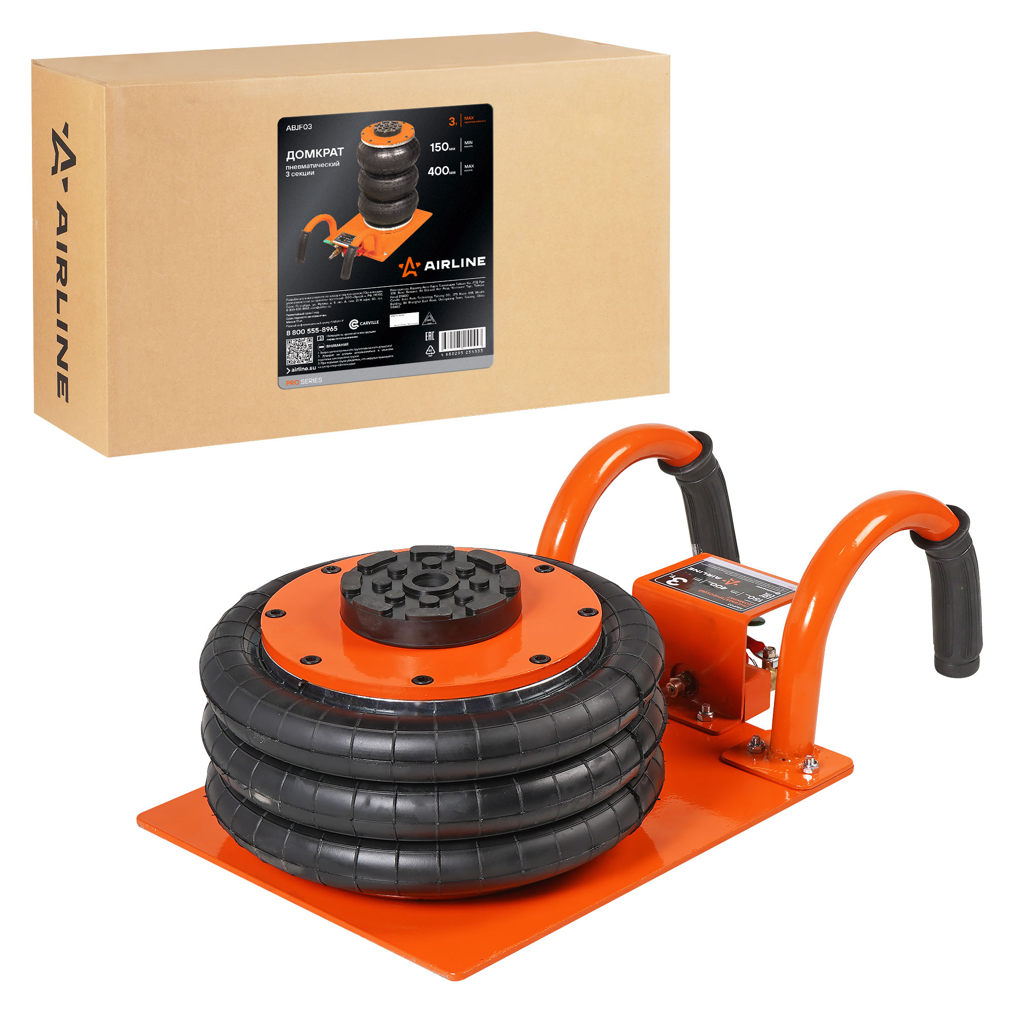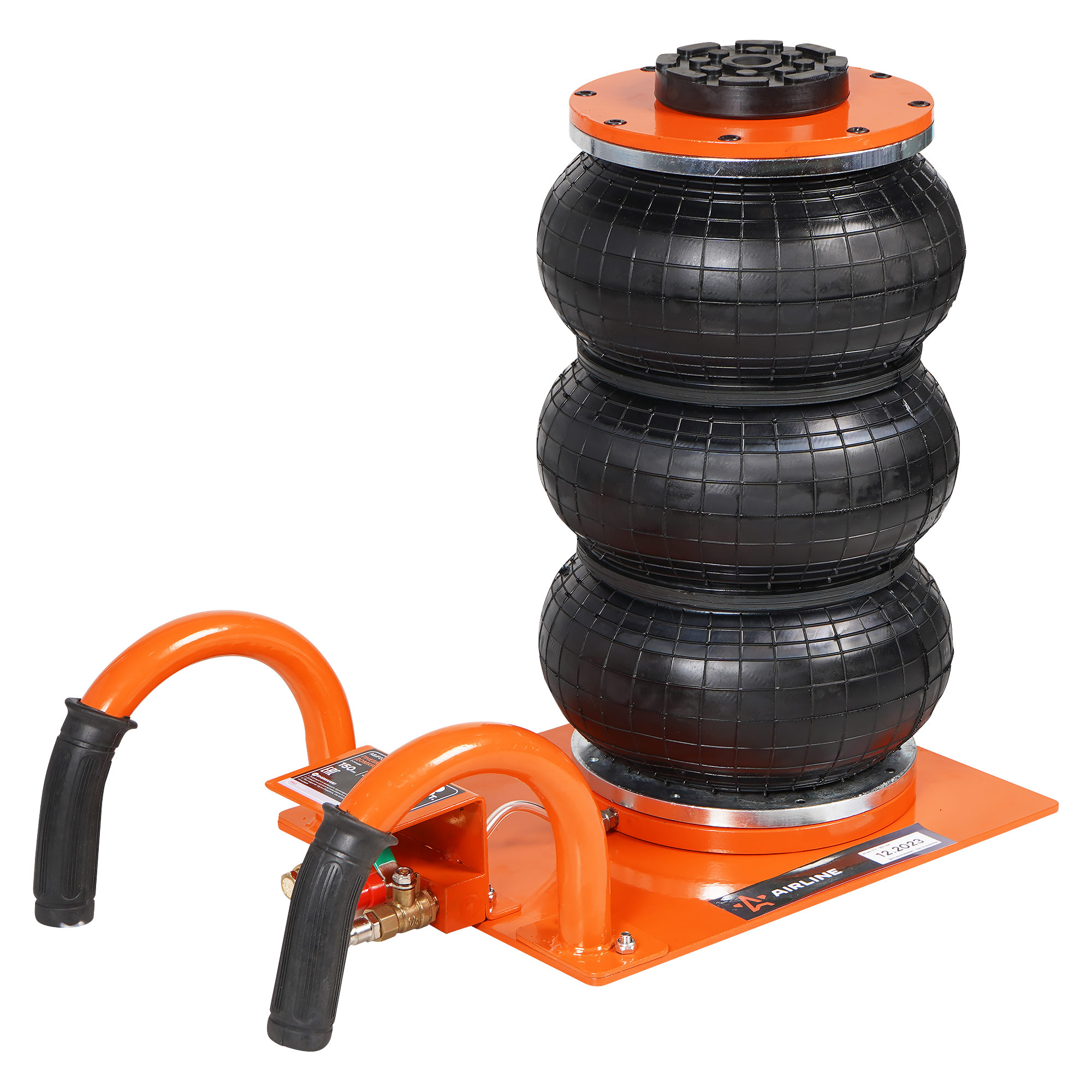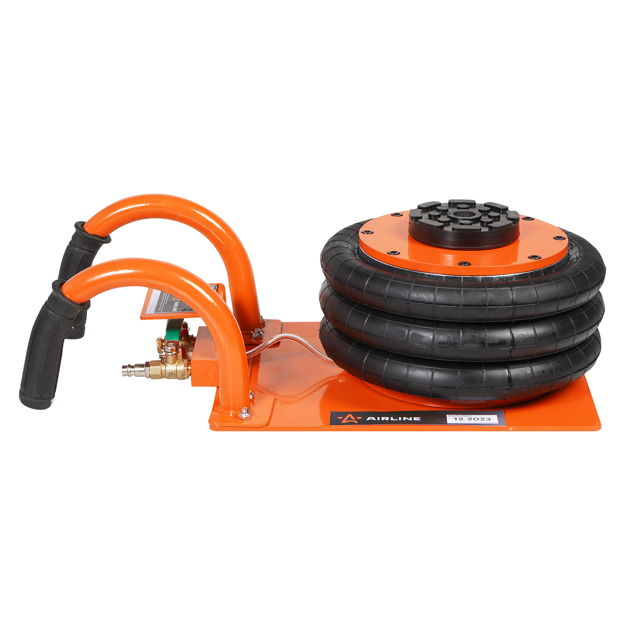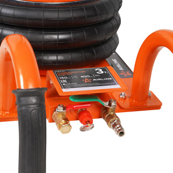 Пневматический 3-секционный домкрат AIRLINE 3т применяется в автосервисах и шиномонтажных мастерских для поднятия автомобиля с целью его ремонта или обслуживания. Сжатый воздух для домкрата можно подавать как от компрессора, так и по магистрали. Для оптимальной работы необходимо давление в 8-12 атм. Благодаря компактным габаритам и малому весу домкрат удобно хранить и транспортировать. Домкрат оснащен широкой прорезиненной опорной чашкой, которая хорошо фиксирует порог автомобиля, не повреждая лакокрасочного покрытия. Прочная конструкция пневматического домкрата имеет долгий срок службы, а качественное лакокрасочное покрытие предотвращает возникновение коррозии.