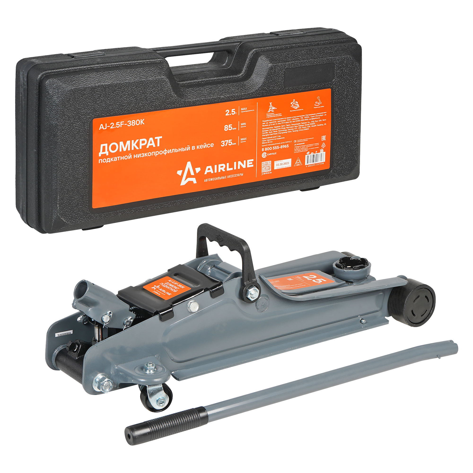 Подкатной низкопрофильный домкрат грузоподъемностью 2.5т способен поднять как автомобиль с низким клиренсом, так и внедорожник. Достигается это за счет низкого подхвата - 85 мм и высокого подъема - 375 мм. Морозостойкое масло сохраняет рабочие функции при низких температурах. Снабжен ремонтным комплектом поршневых колец. Комплектуется кейсом для удобного хранения и транспортировки.